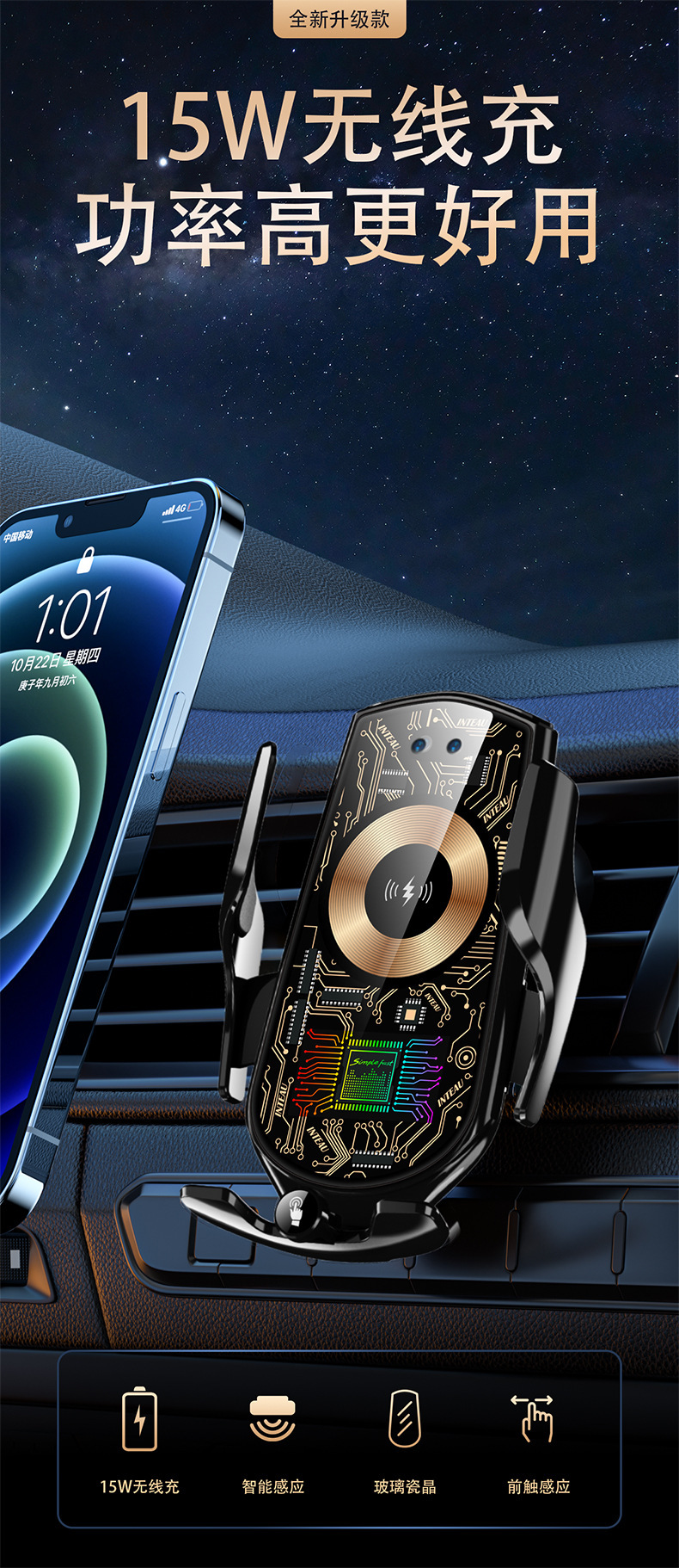 high type + suction cup (wireless + magnetic charging)