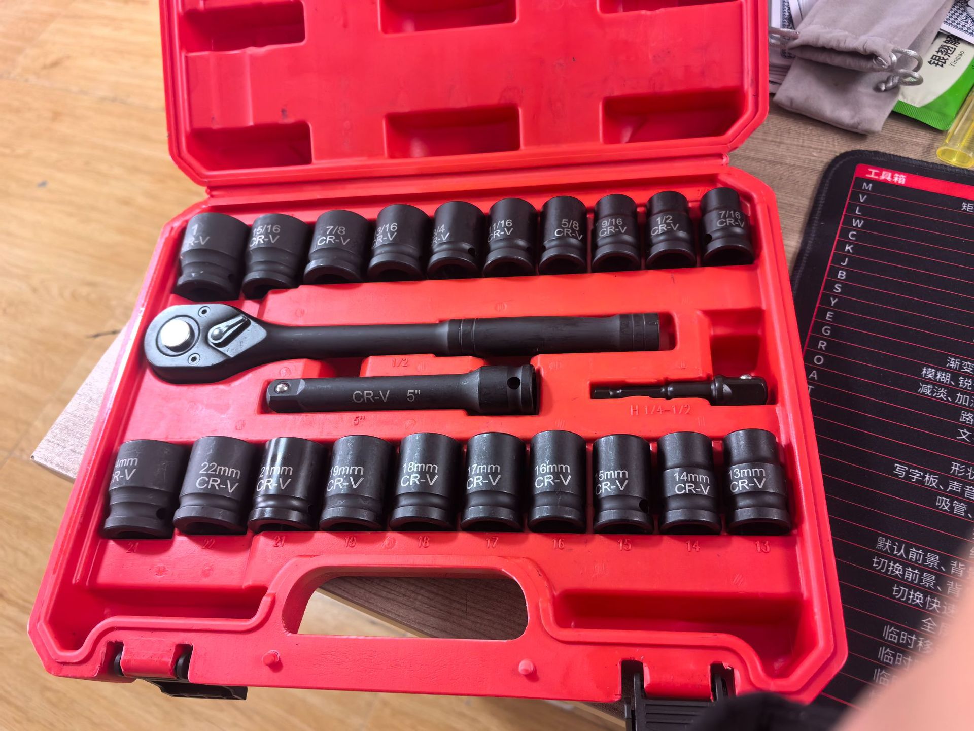 1/2 inch 10-piece set, 4 sets per carton, one piece outside the box, dimensions 34*34*30cm, weight 19.3kg