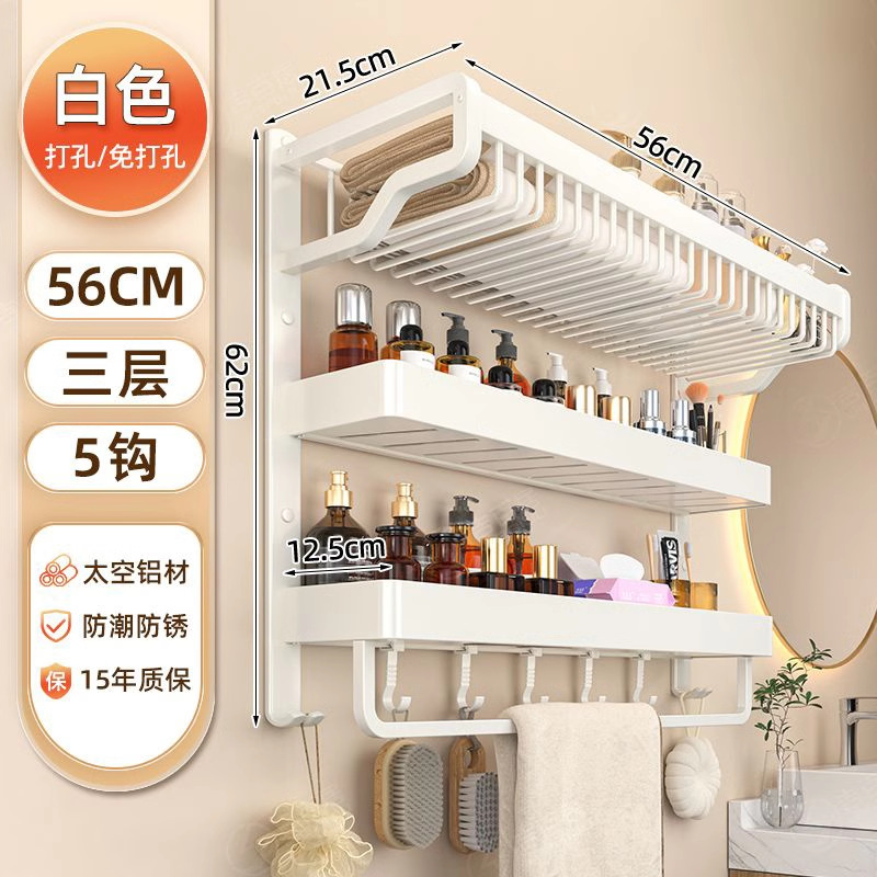 white three-layer mesh basket storage rack 60cm