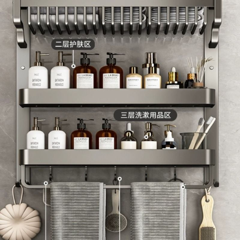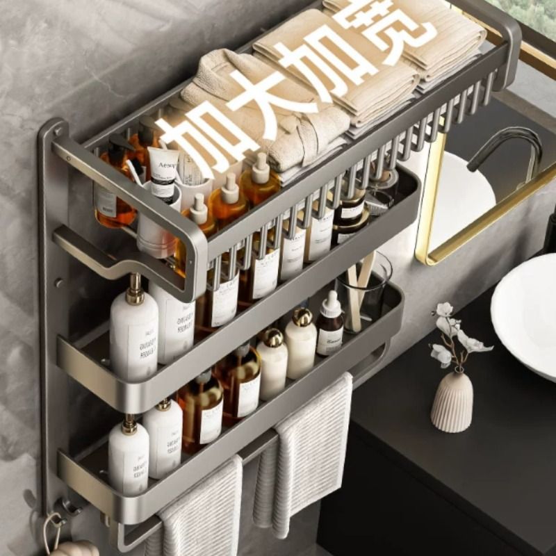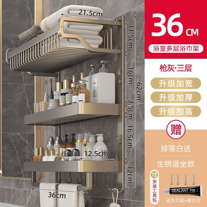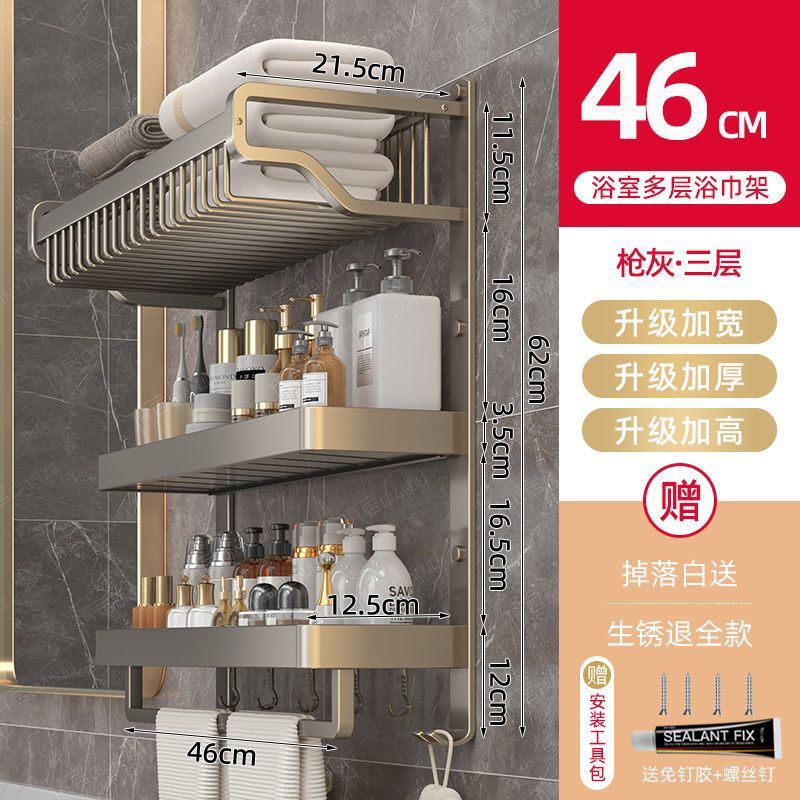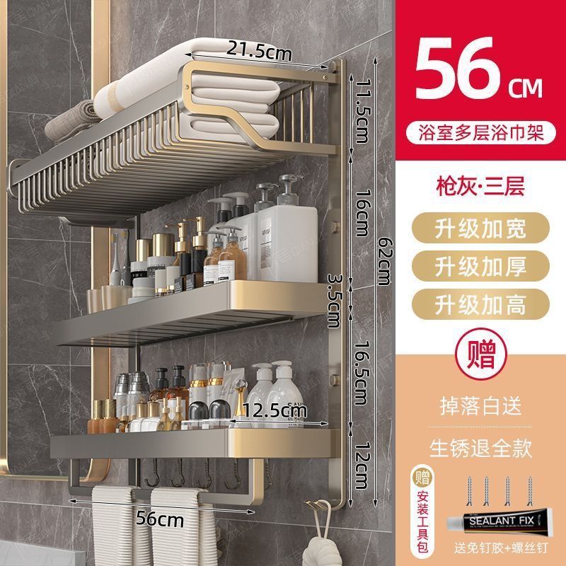 gun gray three-layer mesh basket storage rack 60cm