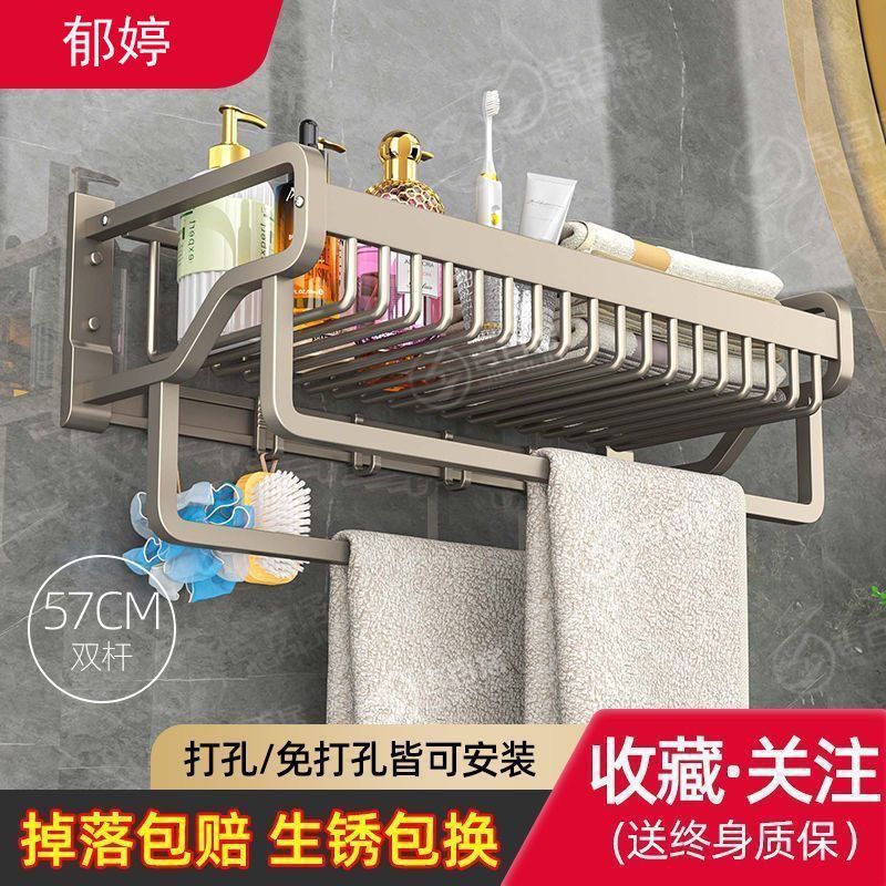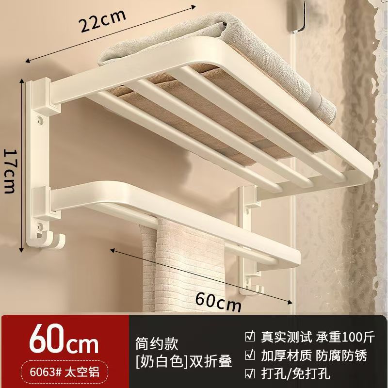 milky white double folding flat tube bath towel rack-60cm