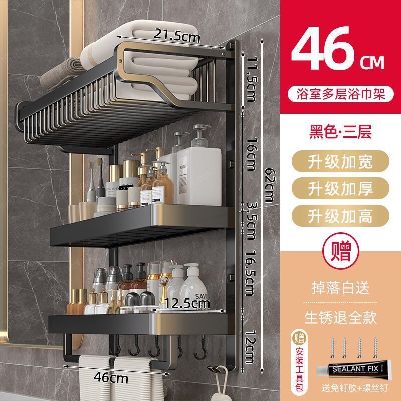 black three-layer mesh basket storage rack 60cm