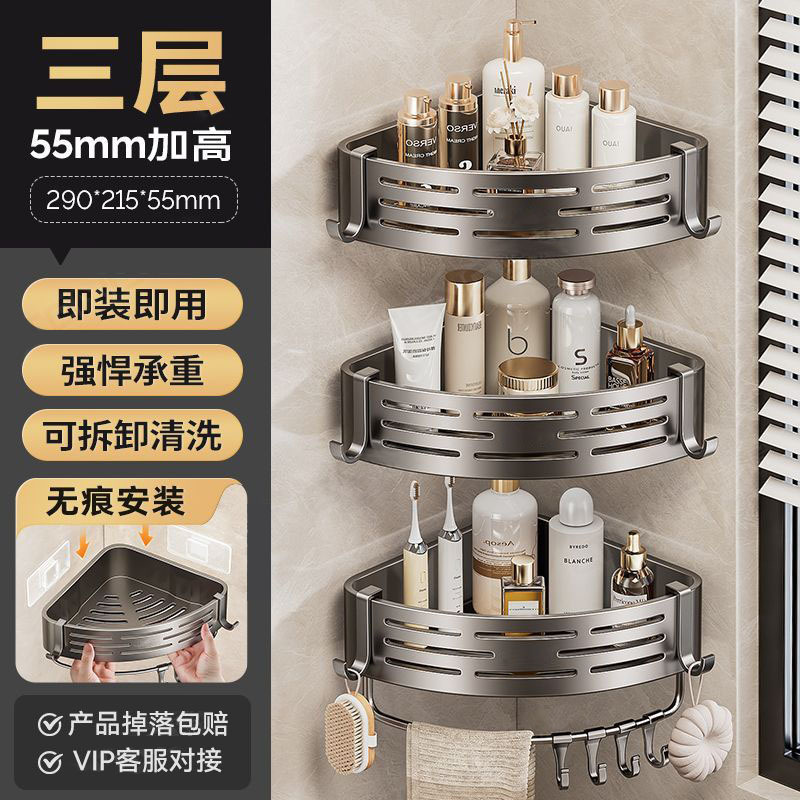 gun gray three-layer + towel bar with 10 hooks [sticky piece] abs