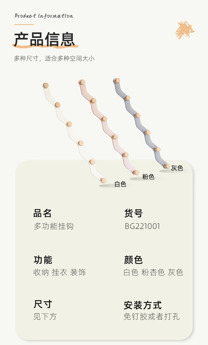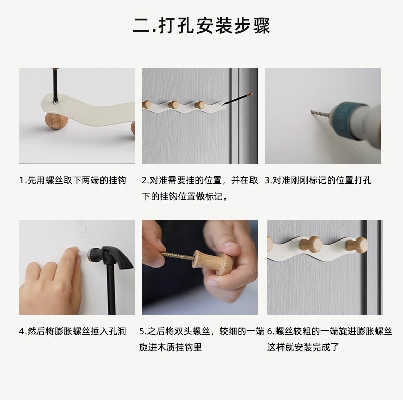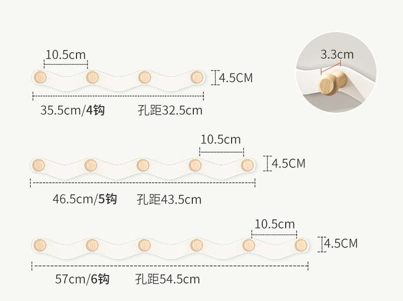 white door back wave row hook-6 hook