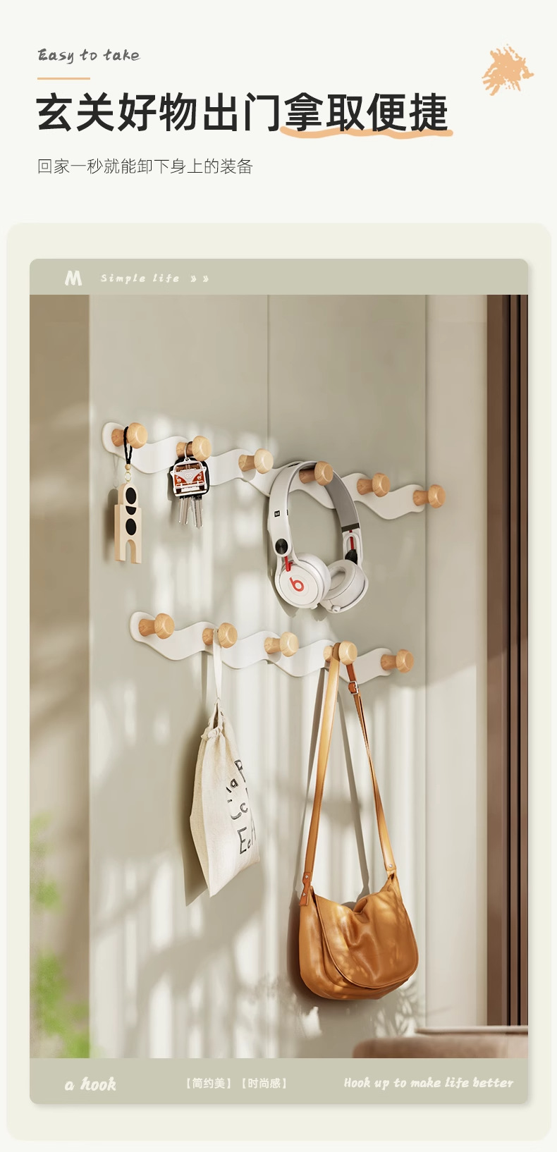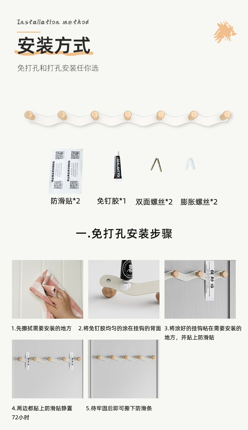 white door back wave row hook-4 hook