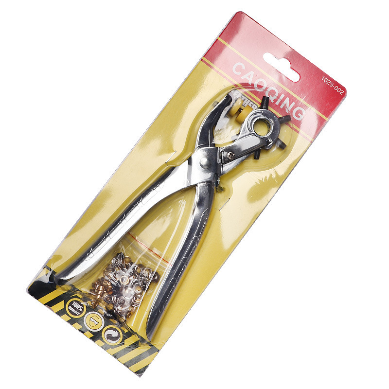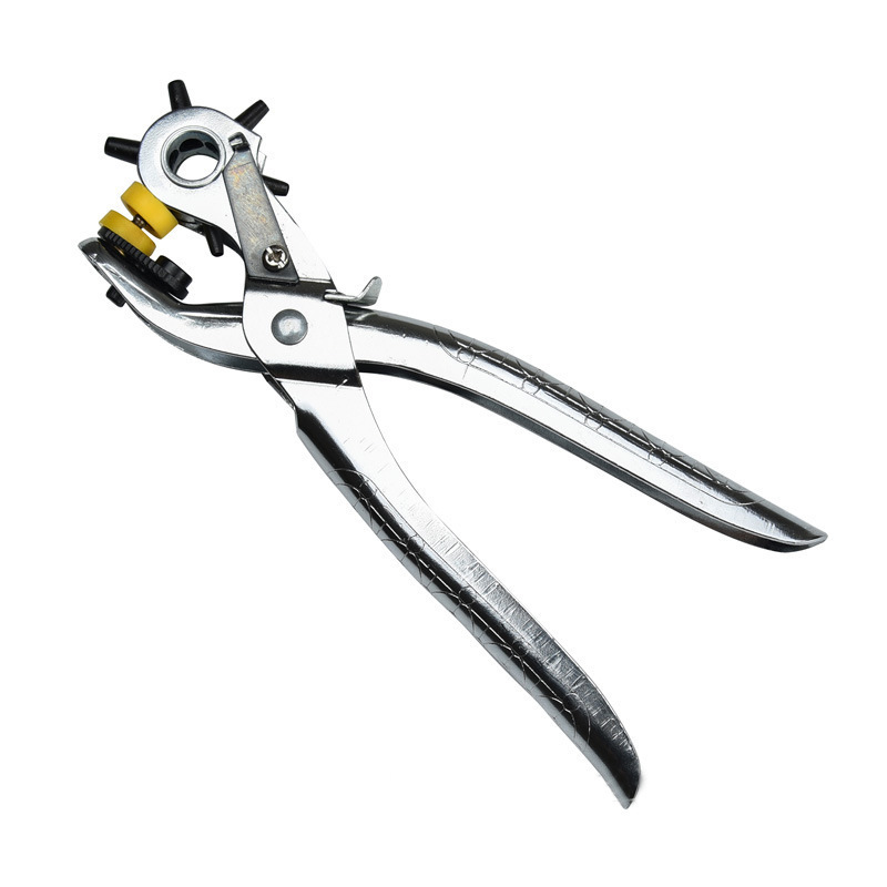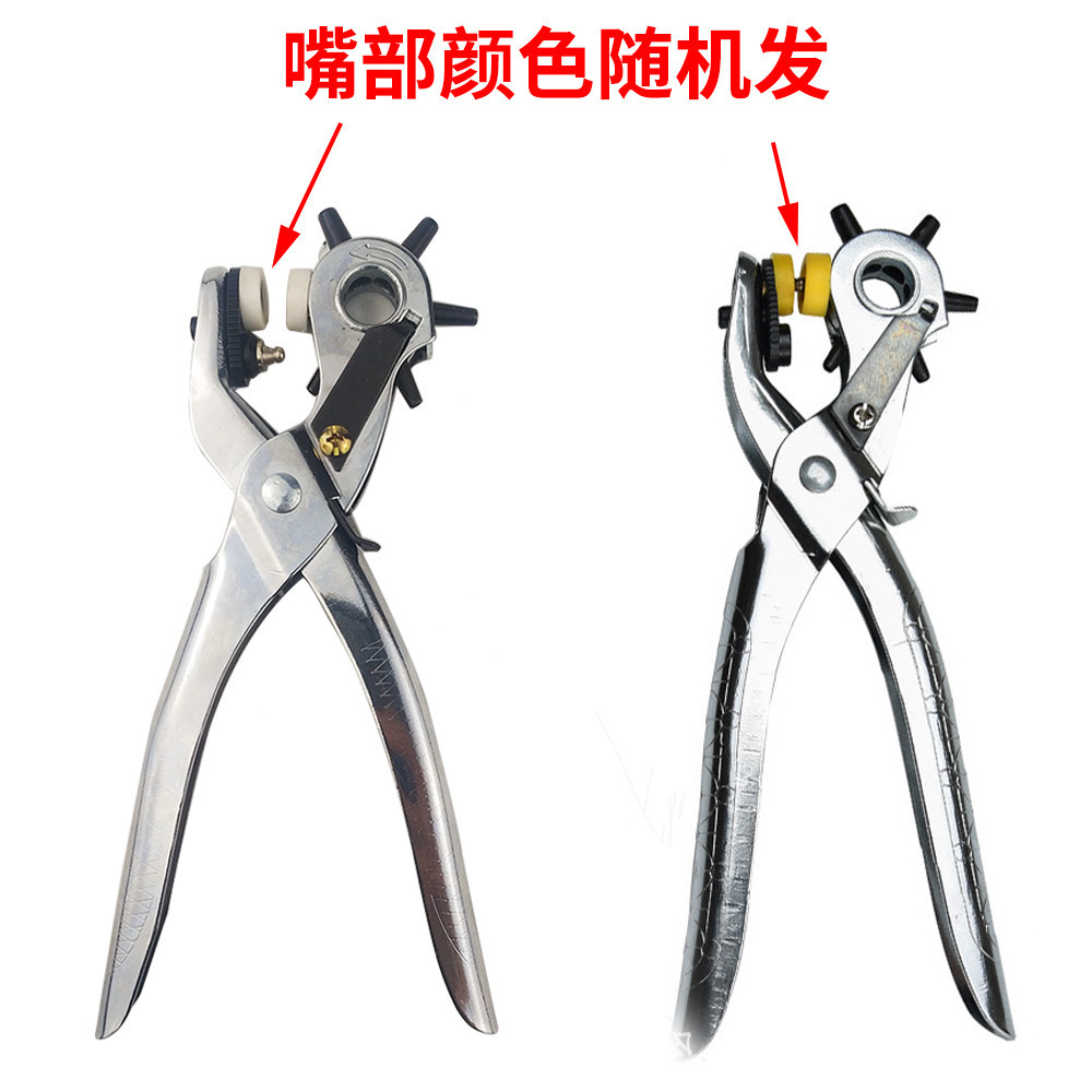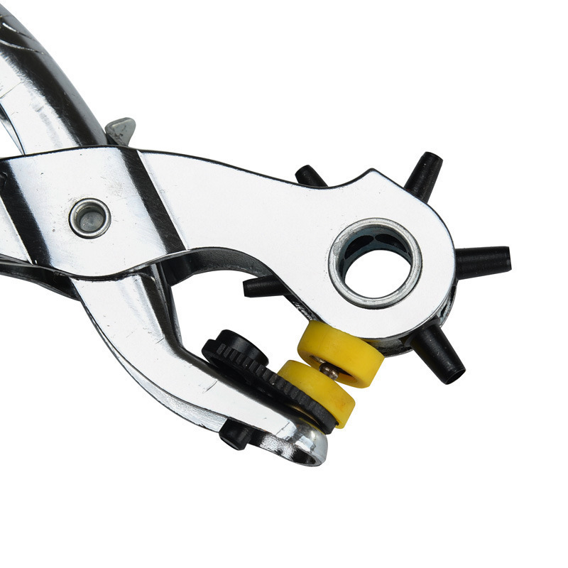 Usage: This product can be used for punching holes in belts, luggage, plastic products, leather goods, paper, and paper cards. It is lightweight and convenient to use, suitable for use in homes, offices, shopping malls, schools, and production workshops, etc. The pliers head has six different hole diameters, with diameters of 2.0mm, 2.5mm, 3.0mm, 3.5mm, 4.0mm, and 4.5mm. The punch heads have been heat-treated. The six heads can be rotated, and users can adjust them according to their needs.