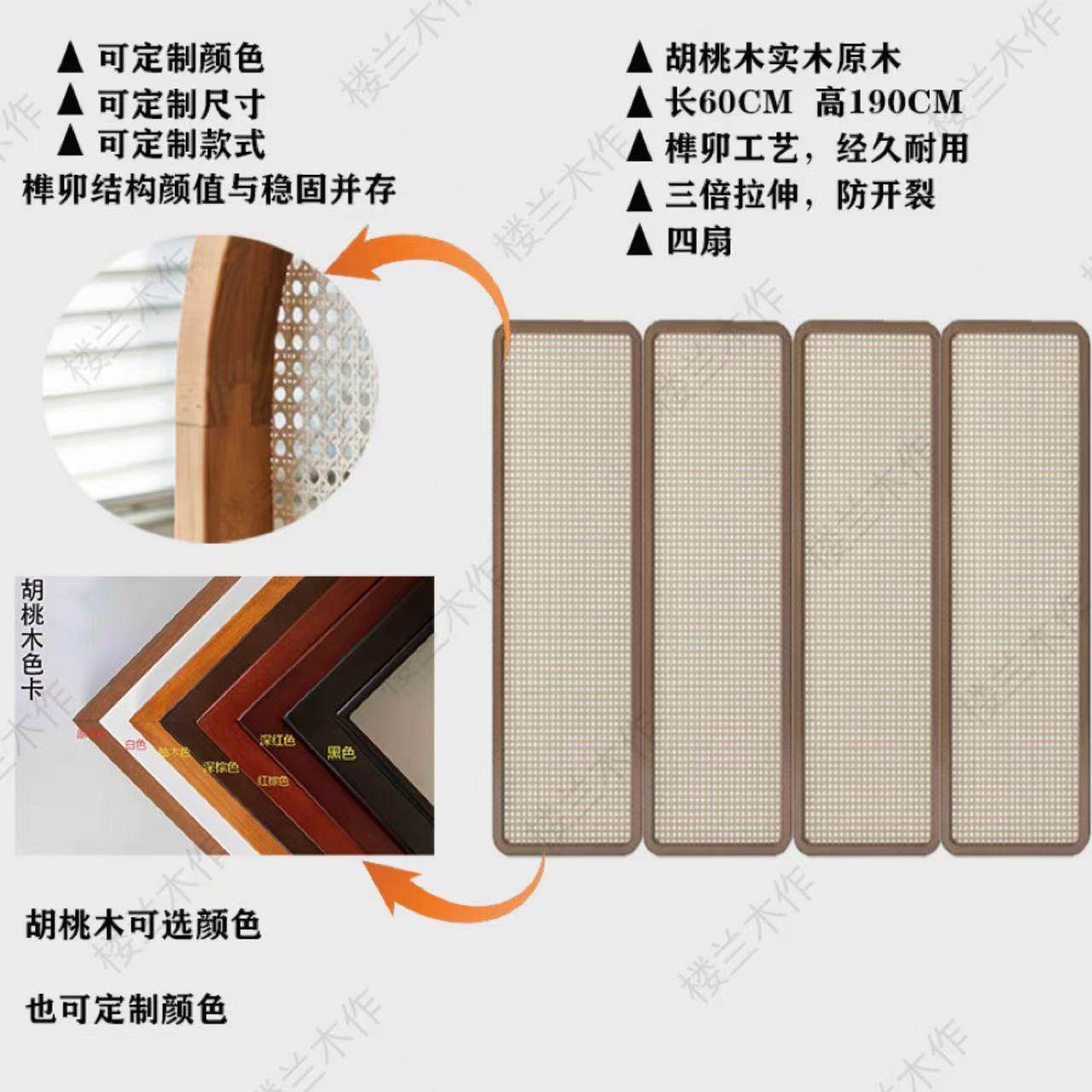 four fans: 60 * 190cm (rattan) walnut solid wood mortise craft