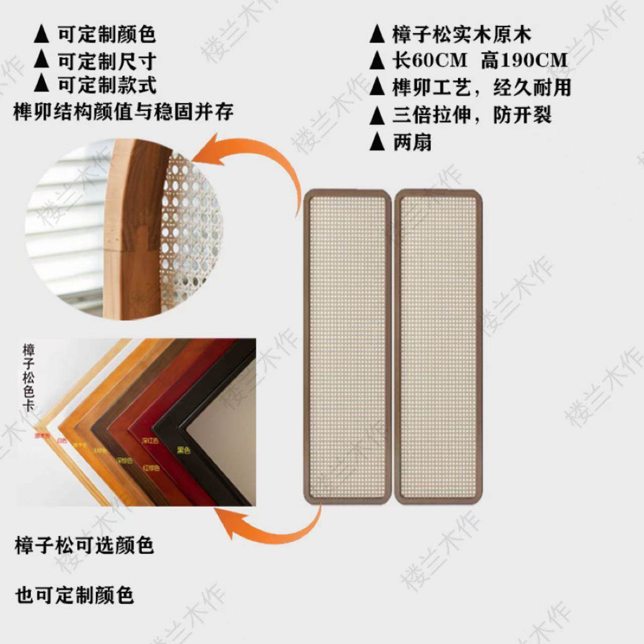 two fans: 60 * 190cm (rattan) camphor pine solid wood mortise craft