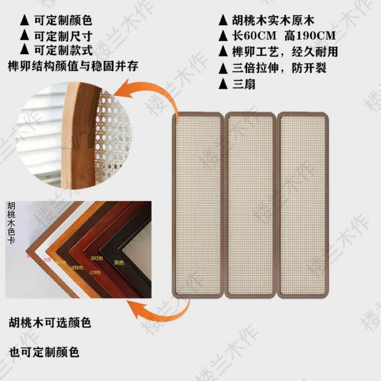 three fans: 60 * 190cm (rattan) walnut solid wood mortise craft
