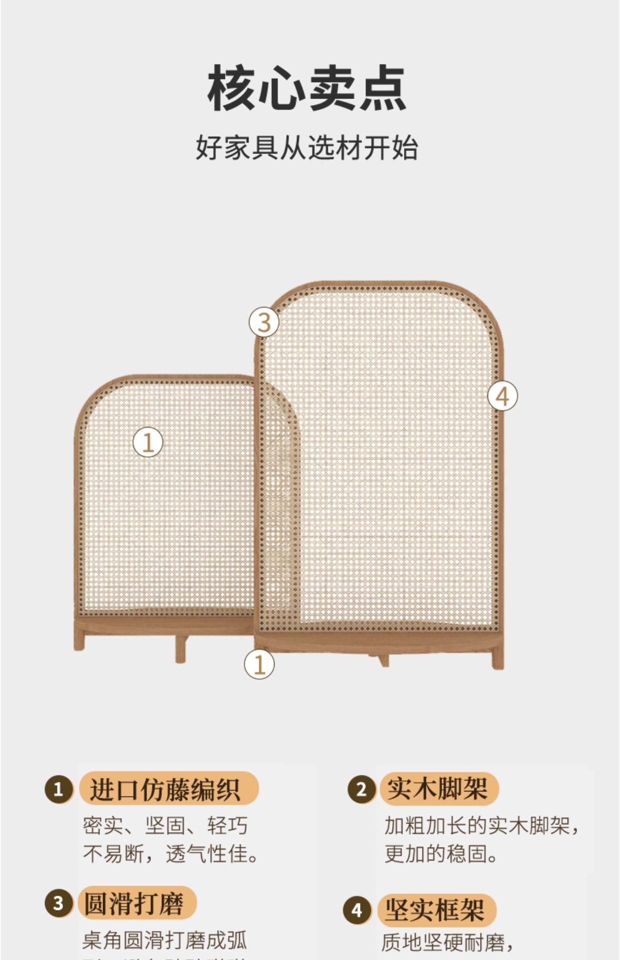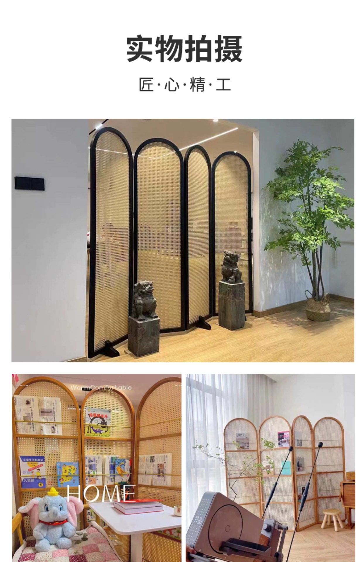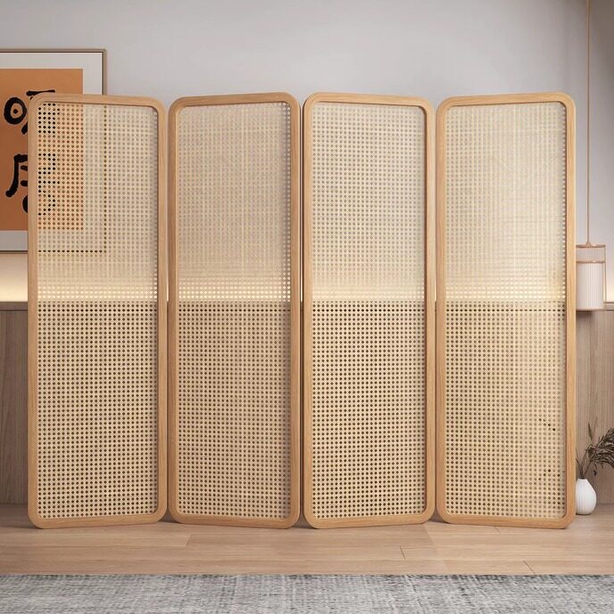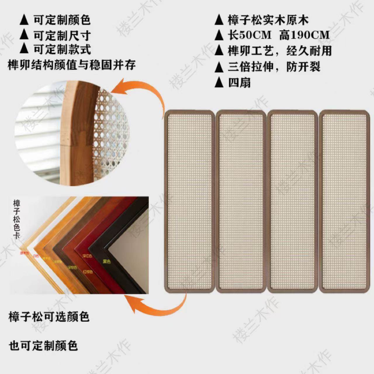 four fans: 50 * 190cm (rattan) camphor pine solid wood mortise craft