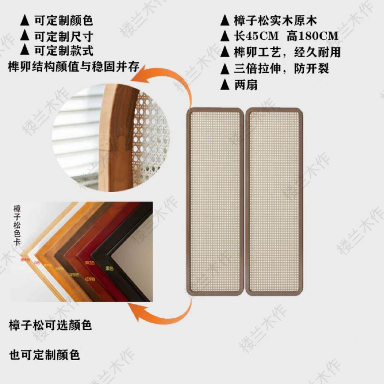 two fans: 50 * 190cm (rattan) camphor pine solid wood mortise craft