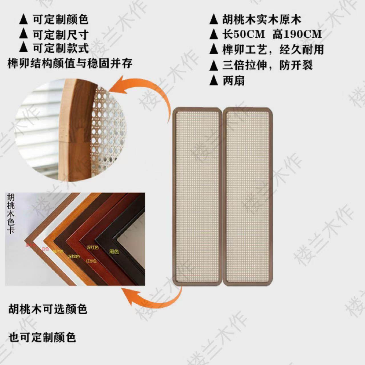 two fans: 60 * 190cm (rattan) walnut solid wood mortise craft