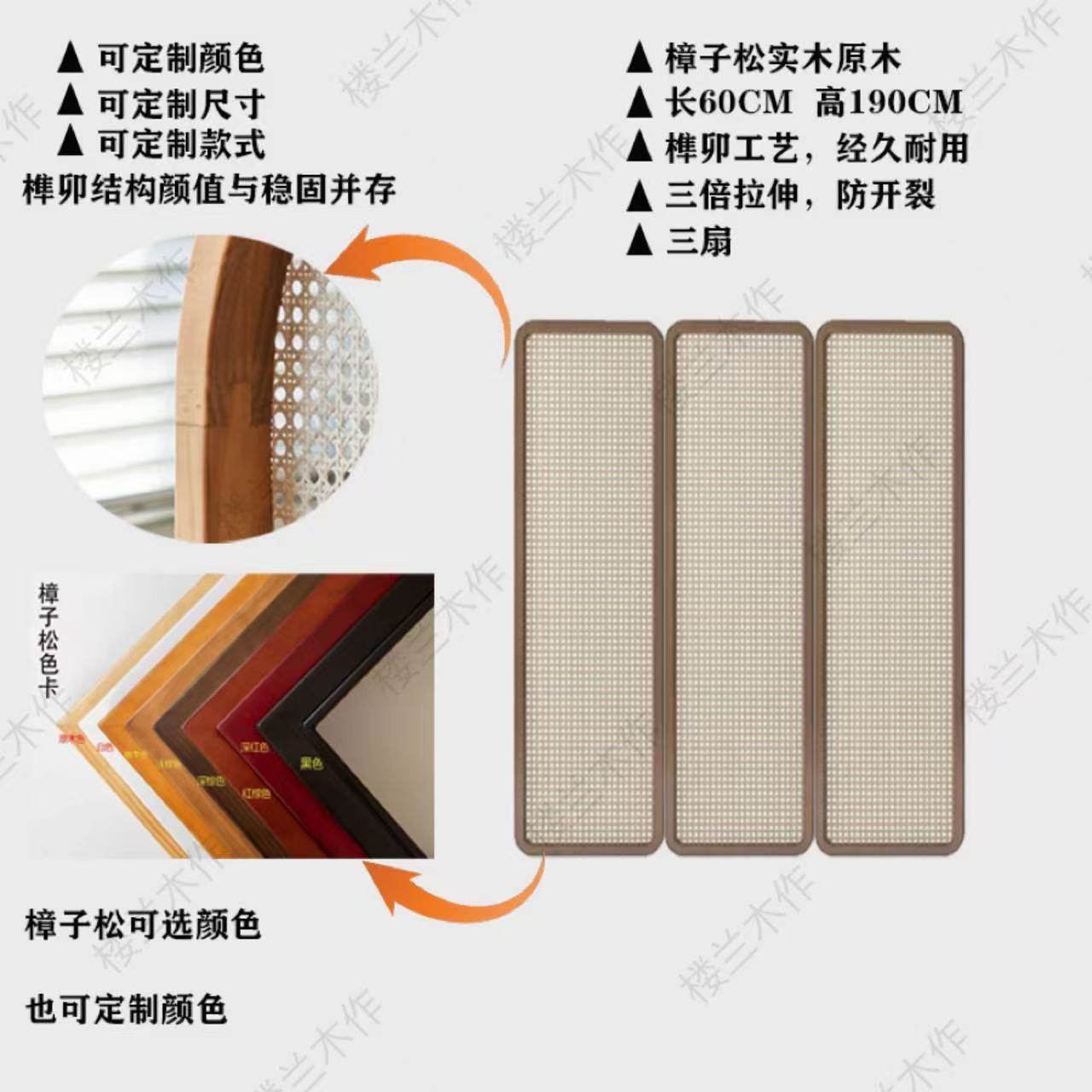three fans: 45 * 180cm (rattan) camphor pine solid wood mortise craft