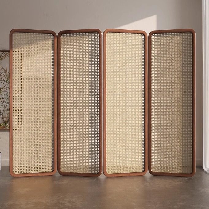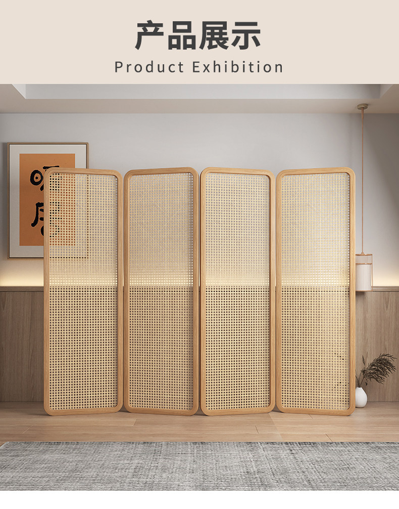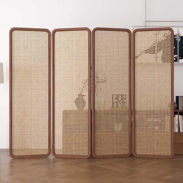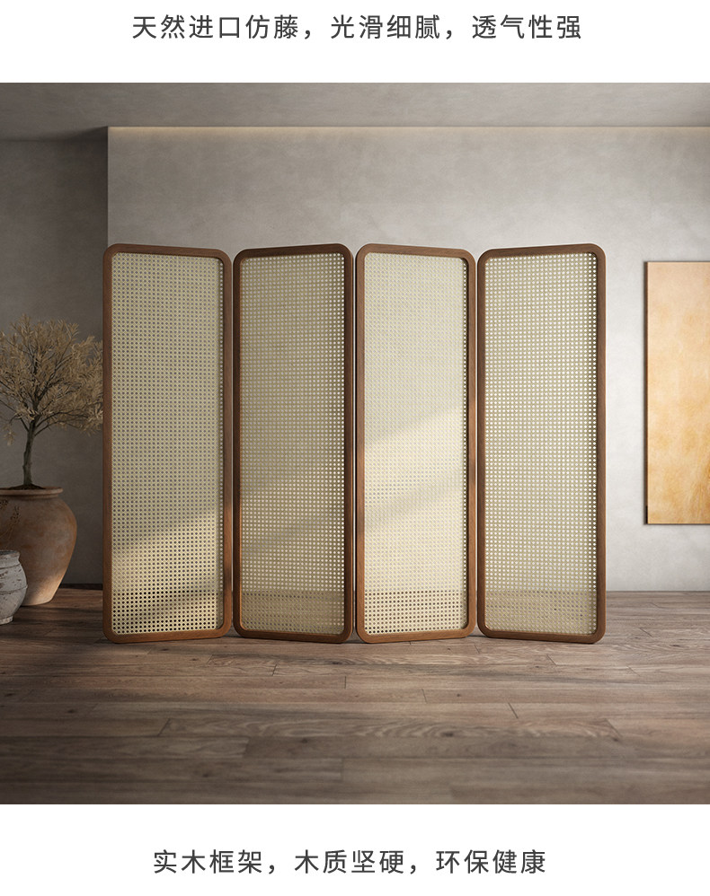 four fans: 50 * 190cm (rattan) walnut solid wood mortise craft