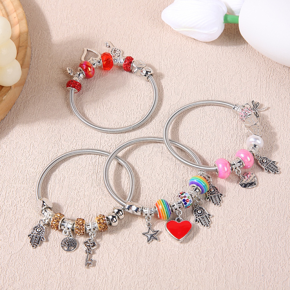 fashion panjia stainless steel love pendant bracelet internet celebrity same style high-grade beaded bracelet light luxury all-match bracelet