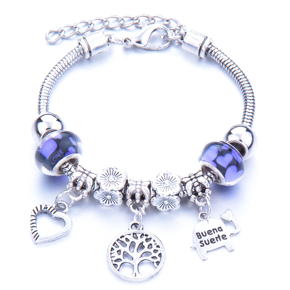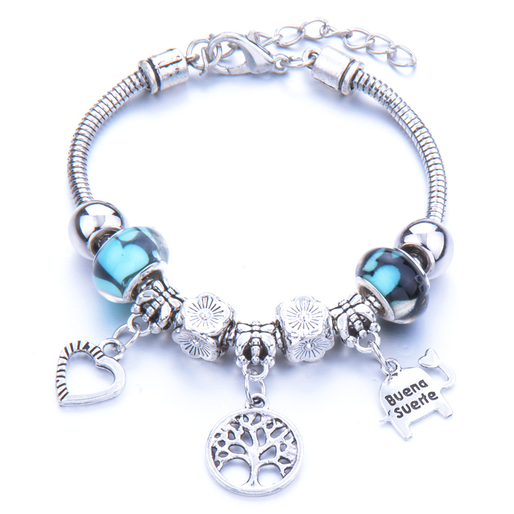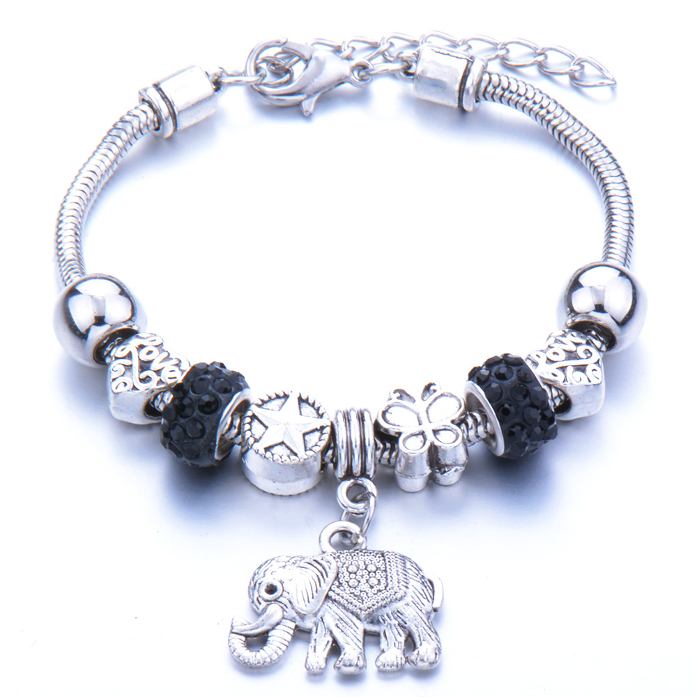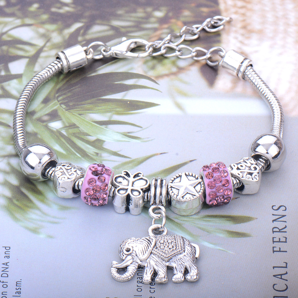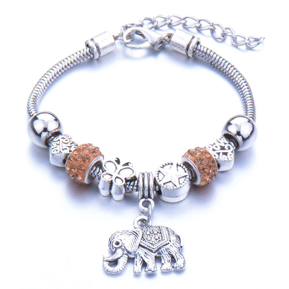 foreign trade exclusive for cross-border fashion diy peach heart bracelet alloy big hole beads elephant transparent glazed bracelet wholesale