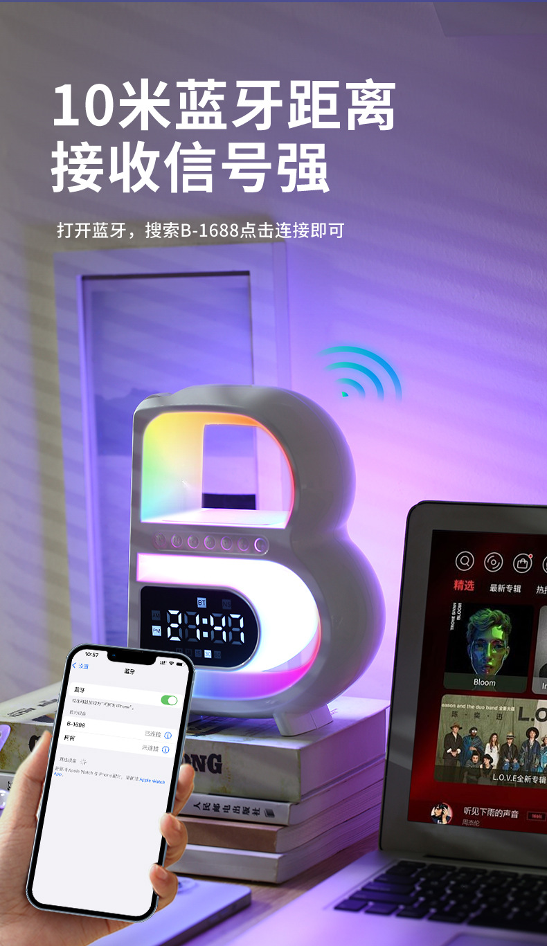 | [wireless charging-13 colorful light-alarm clock timing]] | CN¥ 48.0 | 99339 piece available |