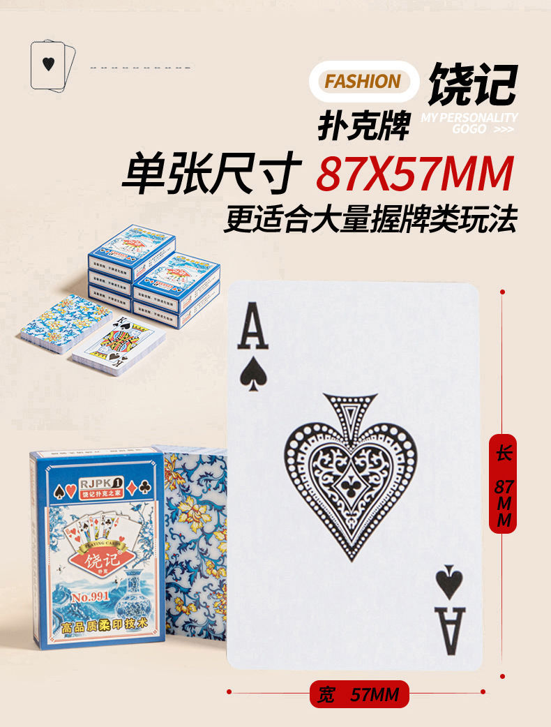 blue and white porcelain playing cards [thickened folding resistant] 30 pairs