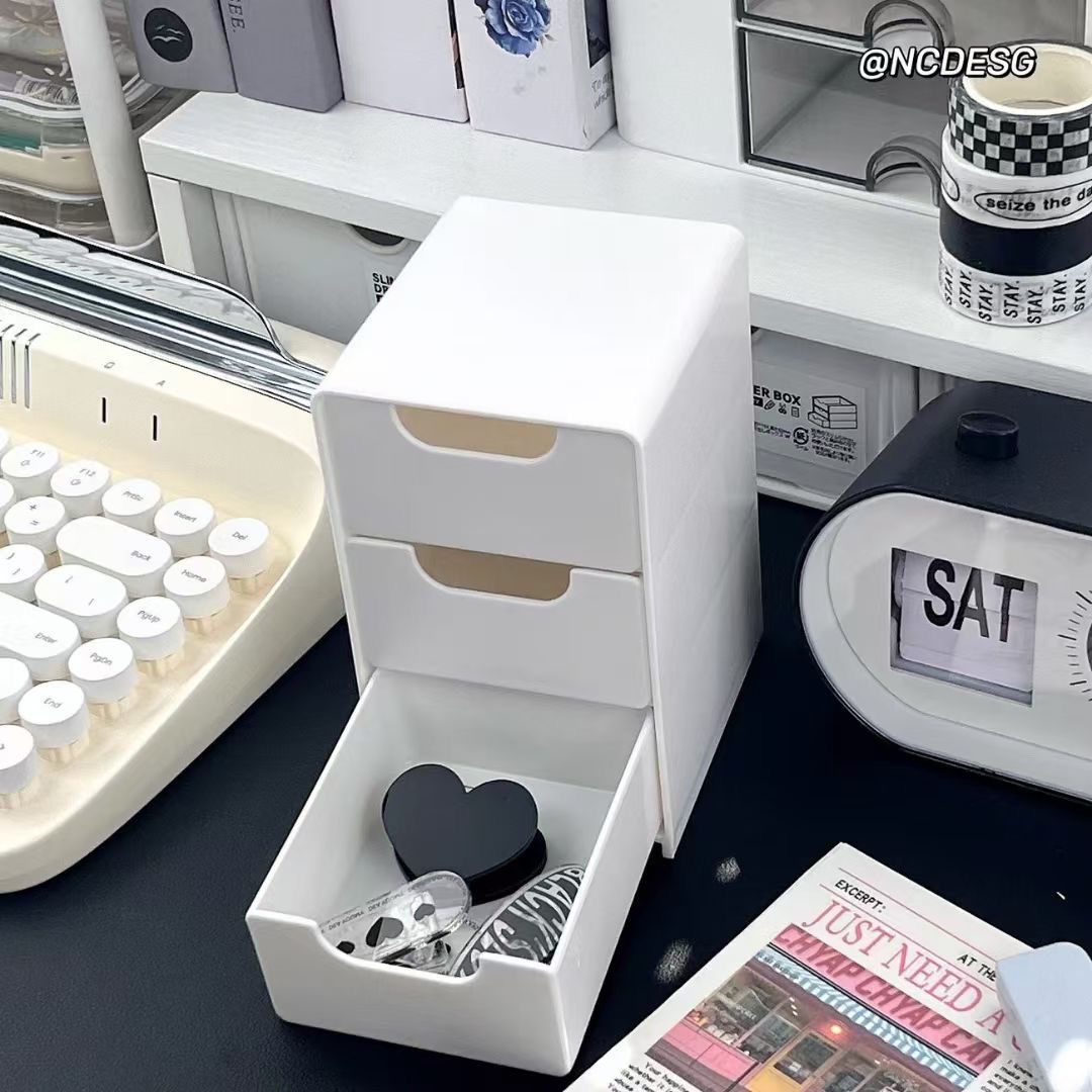 three-layer drawer storage box [milky white]]