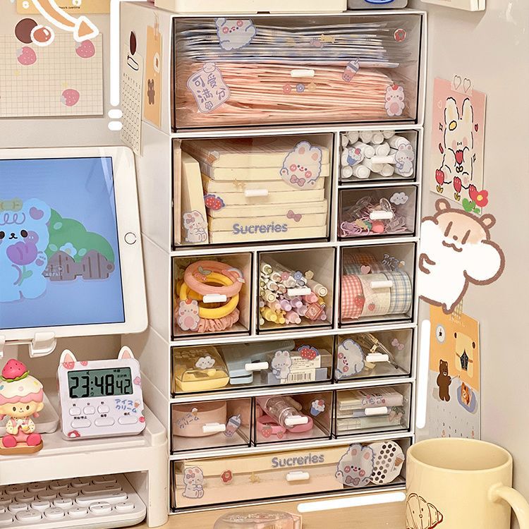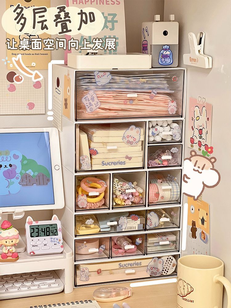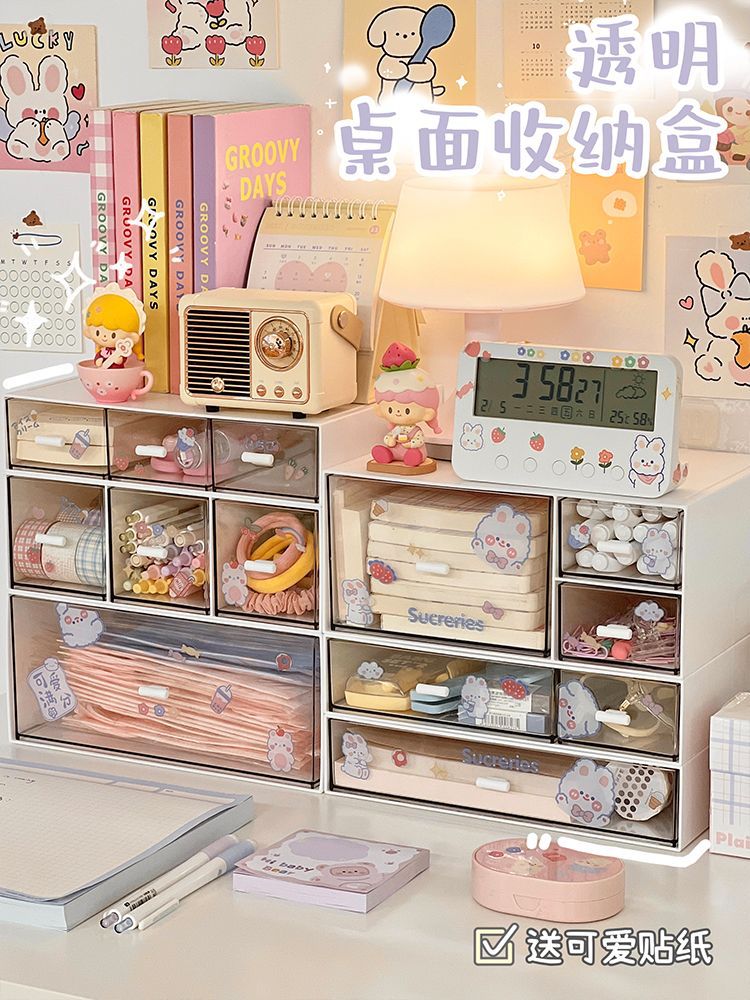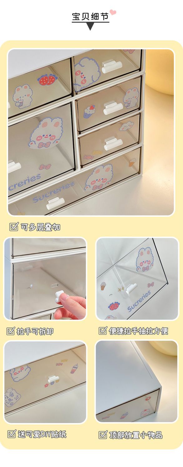 heightened drawer type storage box-3 grid +1 sticker