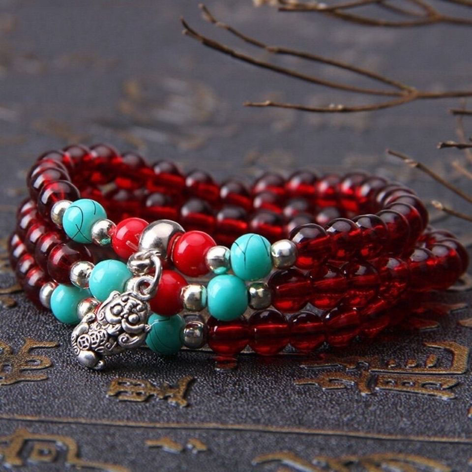 three rings garnet bracelet pendant random