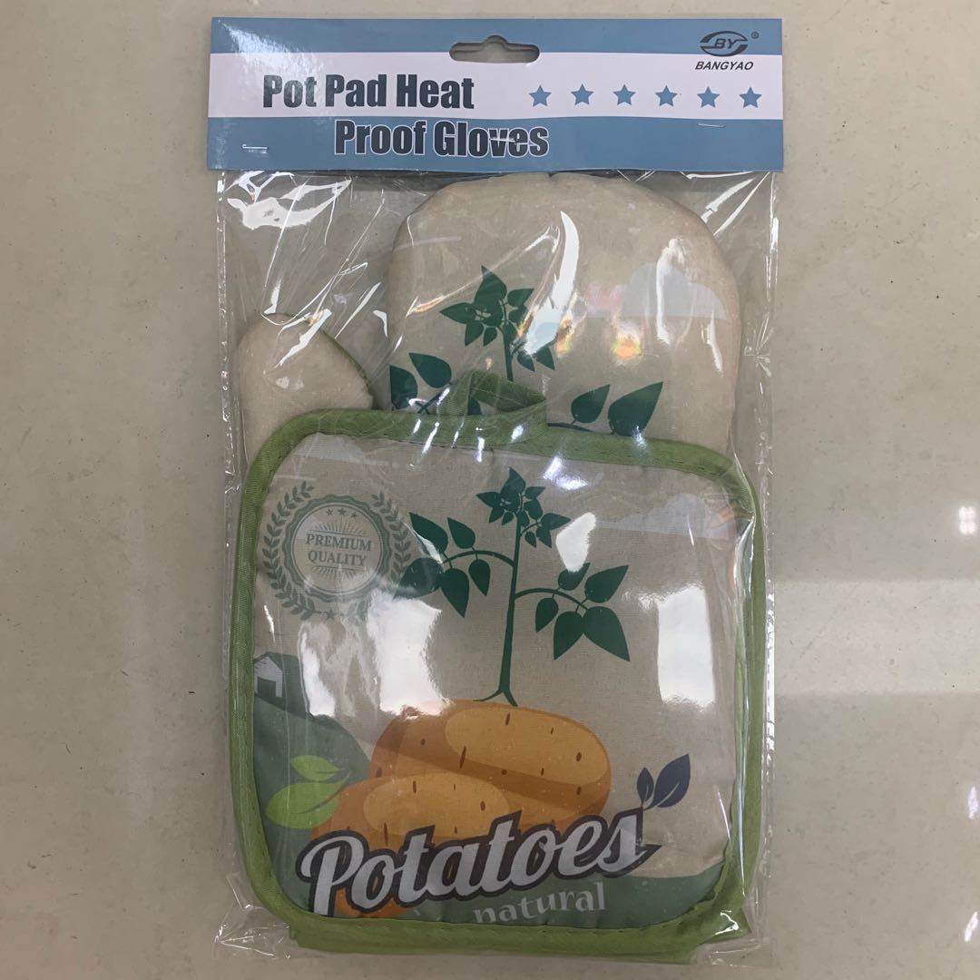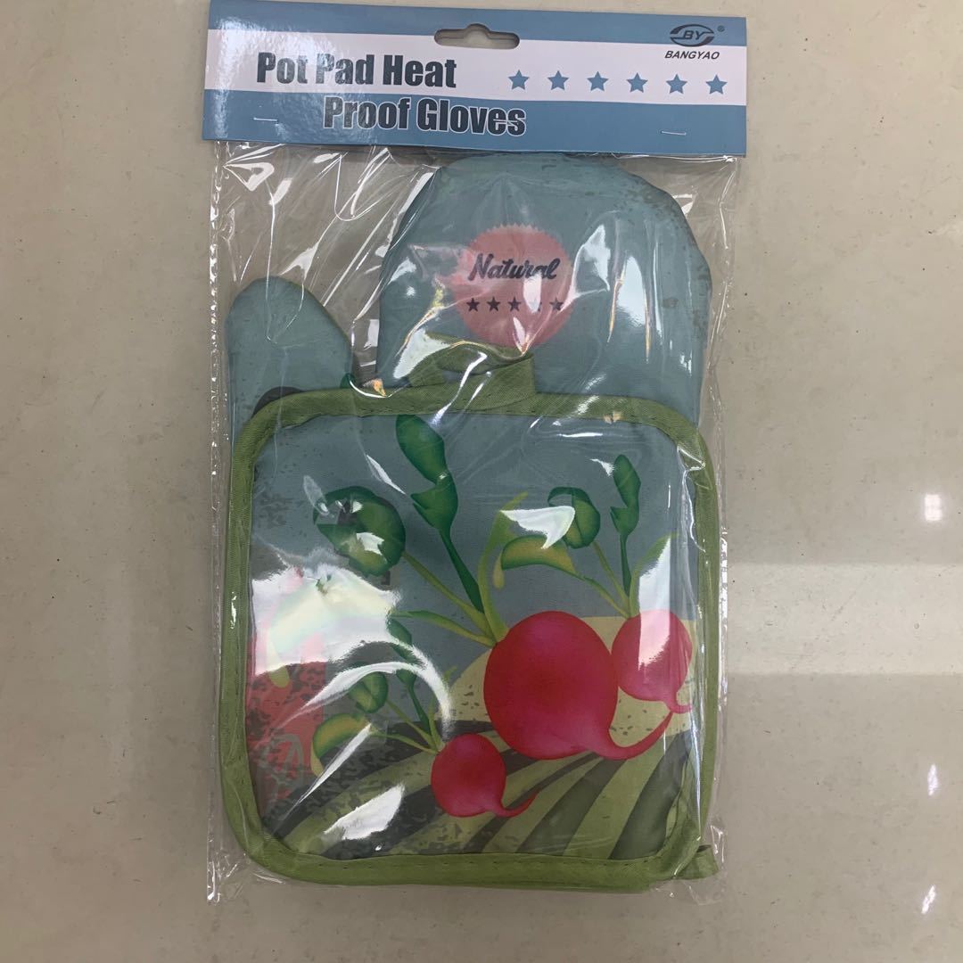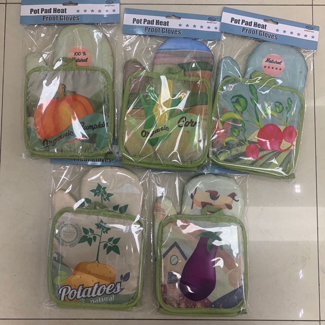 microwave oven gloves vegetable printing microwave oven insulated gloves two-piece daily necessities