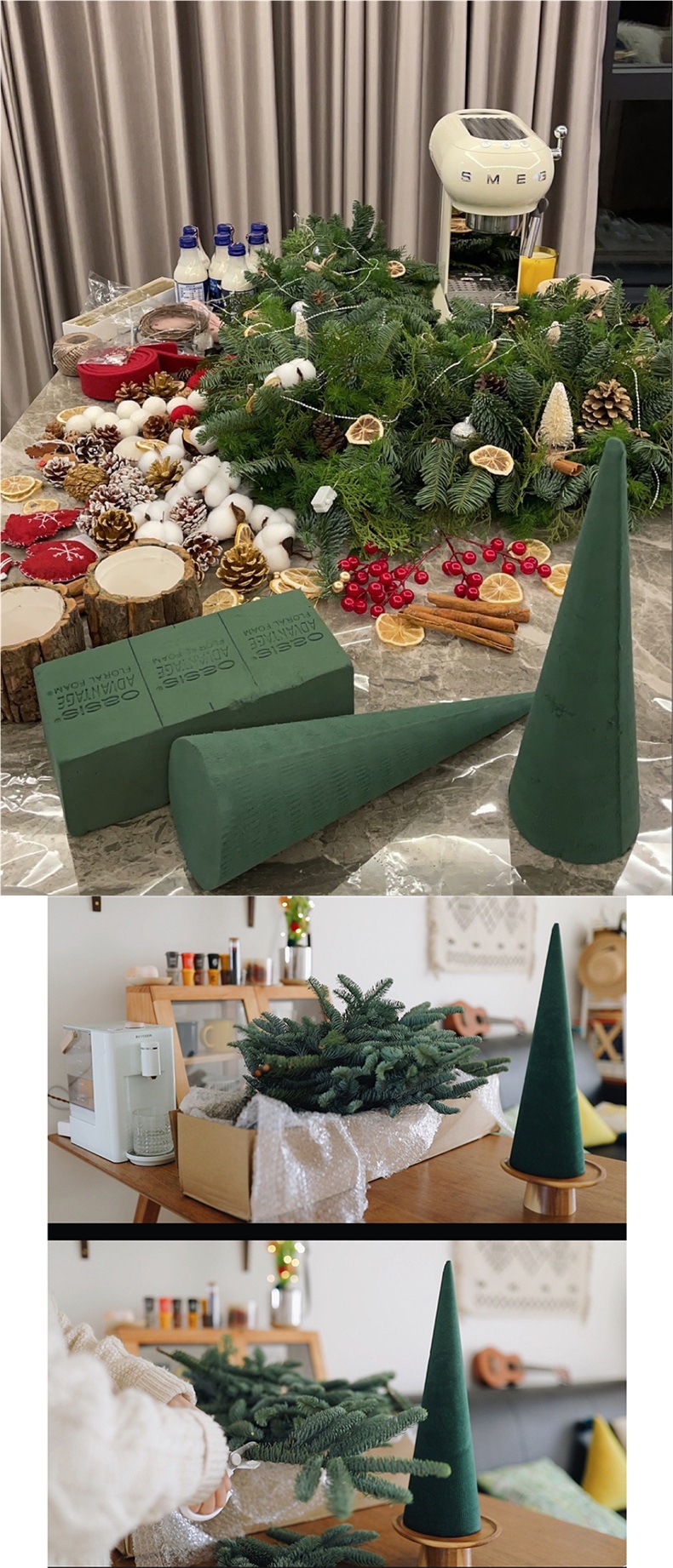 3 large christmas trees (40cm high, 12cm diameter) flower mud-others