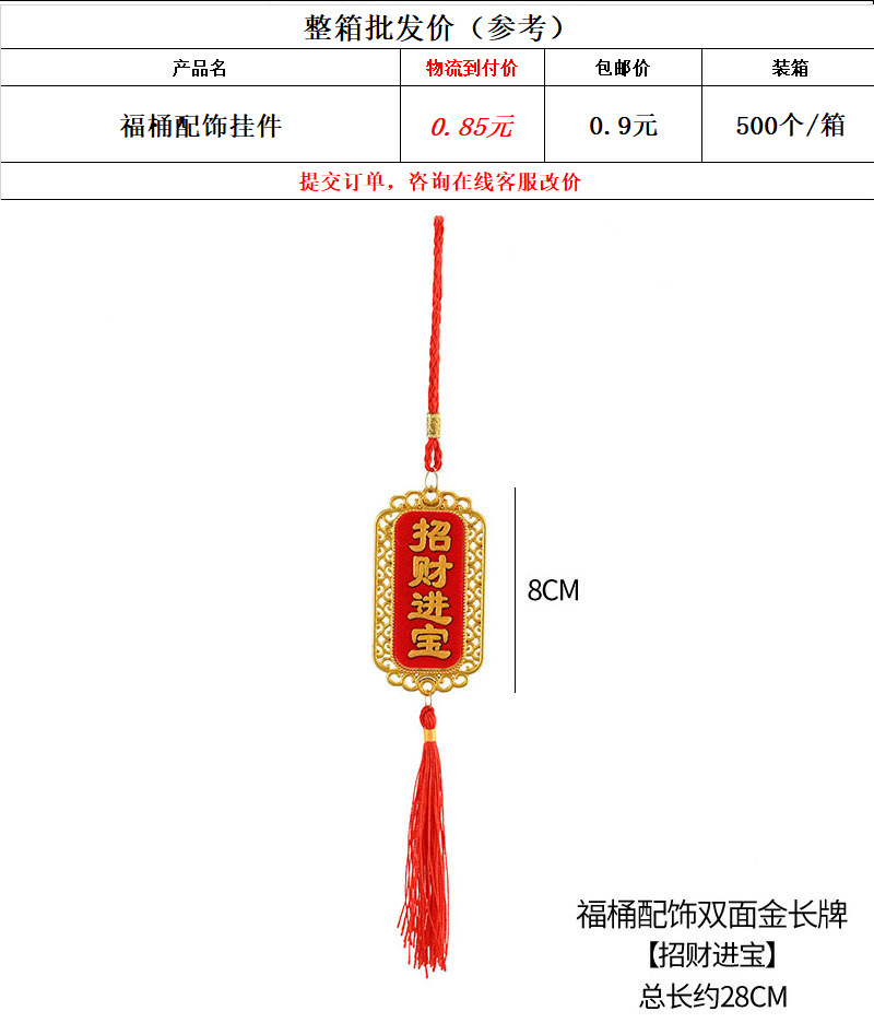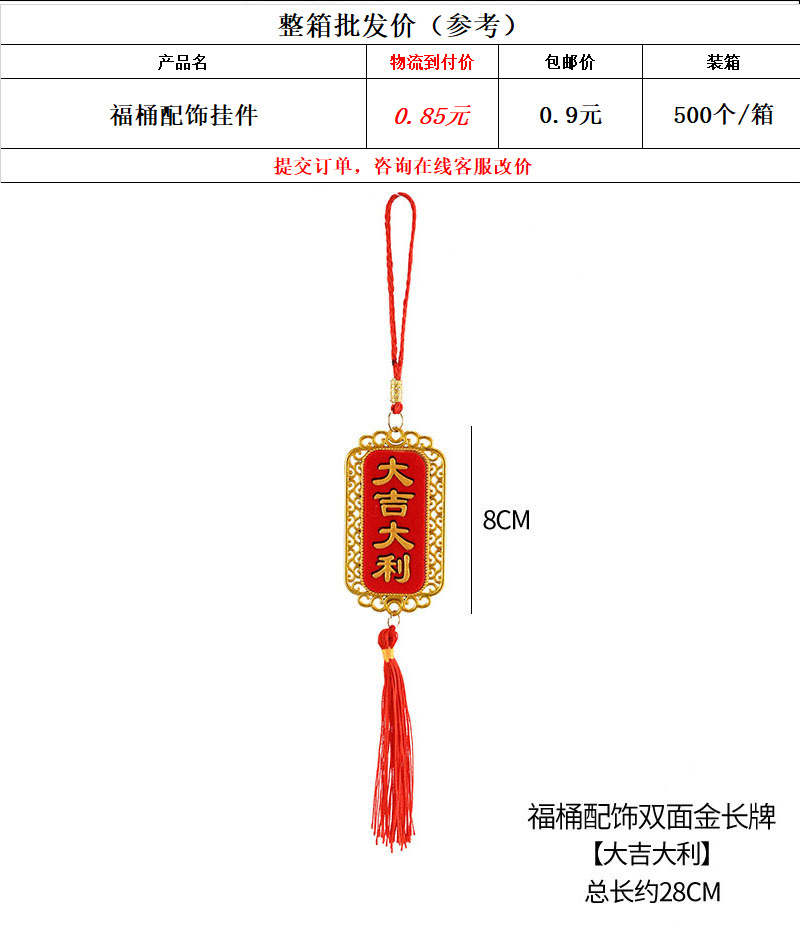 one blessing bucket pendant [tassel/small fu word lantern]; for more information, see the option chart.