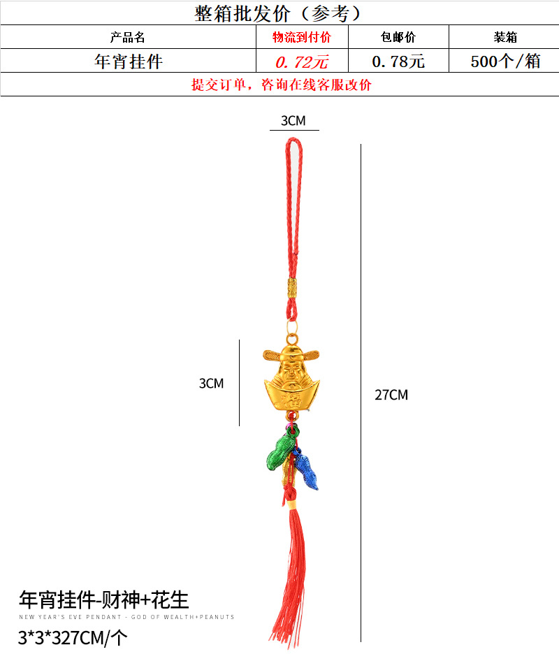 one new year pendant [god of wealth + peanut]; for more information, see the option chart.