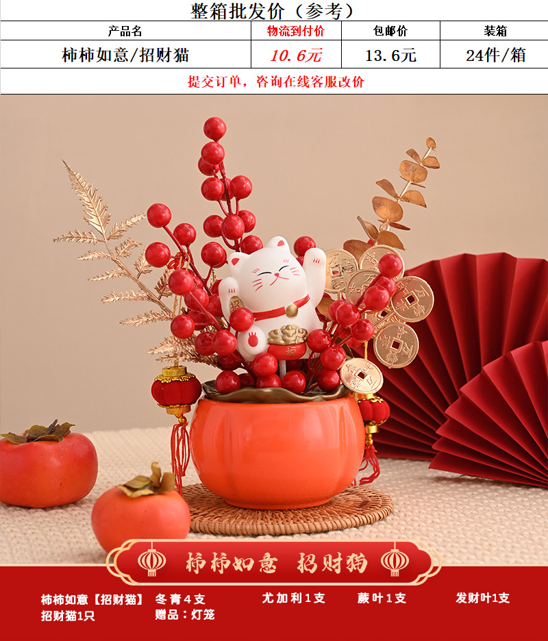 finished persimmon mini blessing bucket [lucky persimmon/fortune cat]; for more information, see option chart.