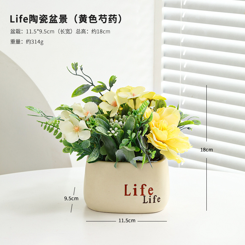 life ceramic potted plant [yellow peony flower]]