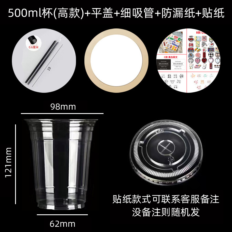 500ml cup (high type) + flat lid + thick straw + leak-proof paper + sticker
