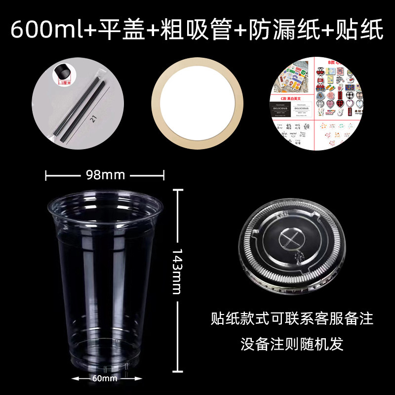 600ml cup + flat lid + thick straw + leak-proof paper + sticker