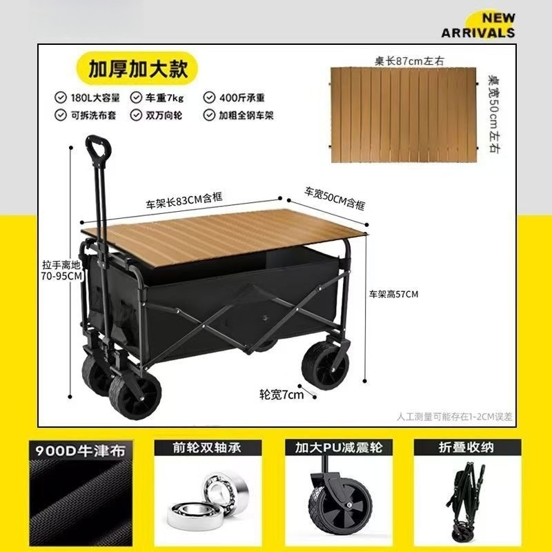 table board package [black] 8-inch off-road wheel/double brake + wood grain table board-durable quality [bold steel frame thicken fabric]]
