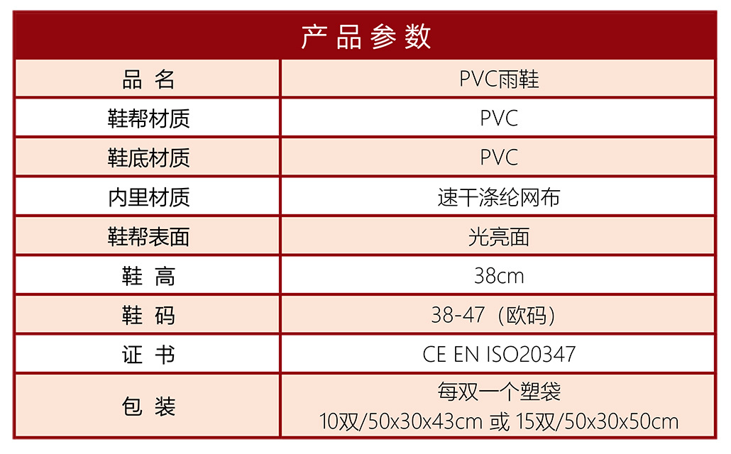 We are a 16-year-old foreign trade factory specializing in the production of PVC safety rain shoes, all of our products meet the CE certification standards.