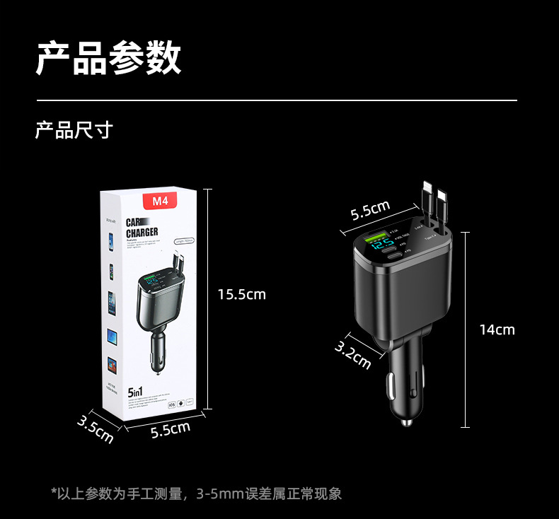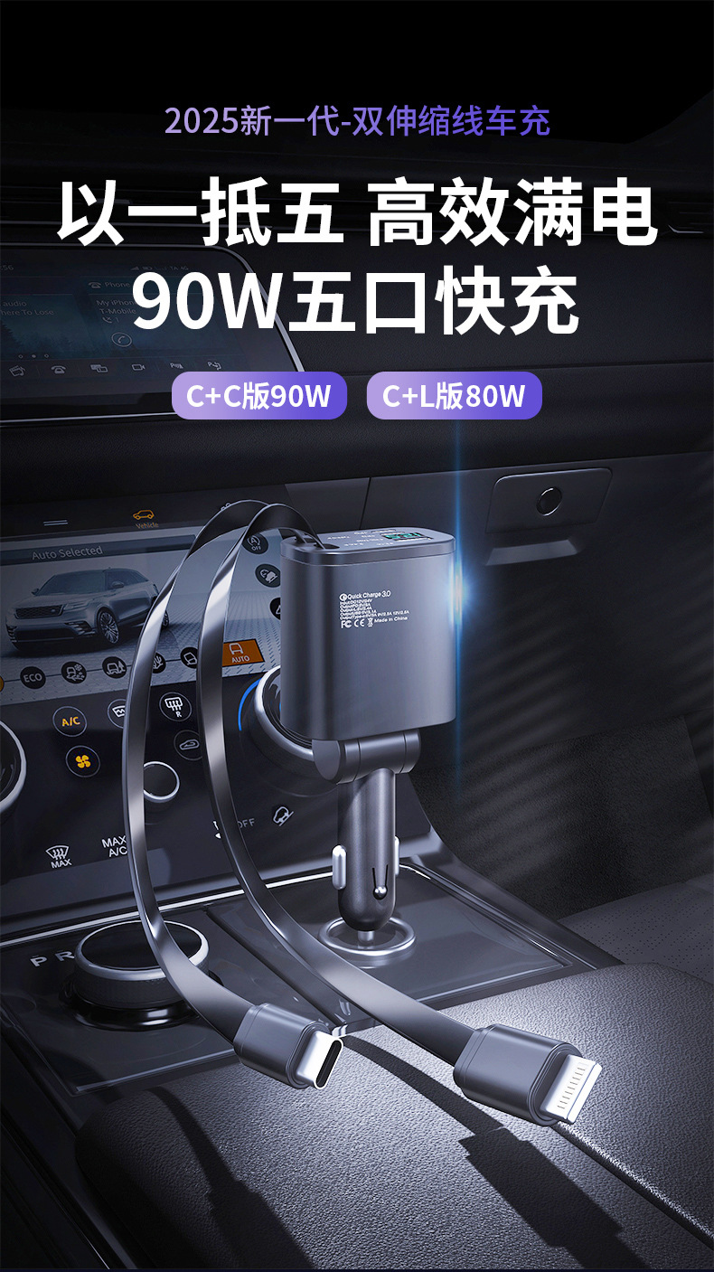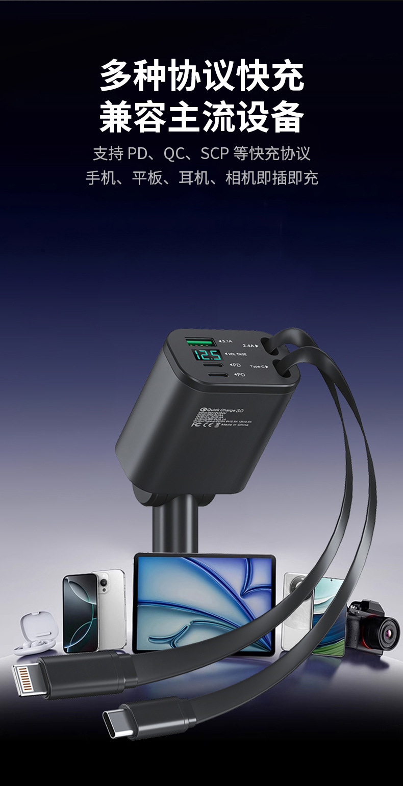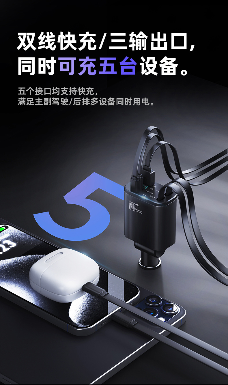 [5-in-1 car charger] double type-c flexible wire + a port + double c port