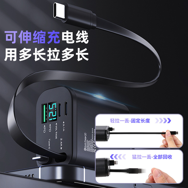 [5-in-1 car charger] apple flexible wire + type-c flexible wire + a port + double c port