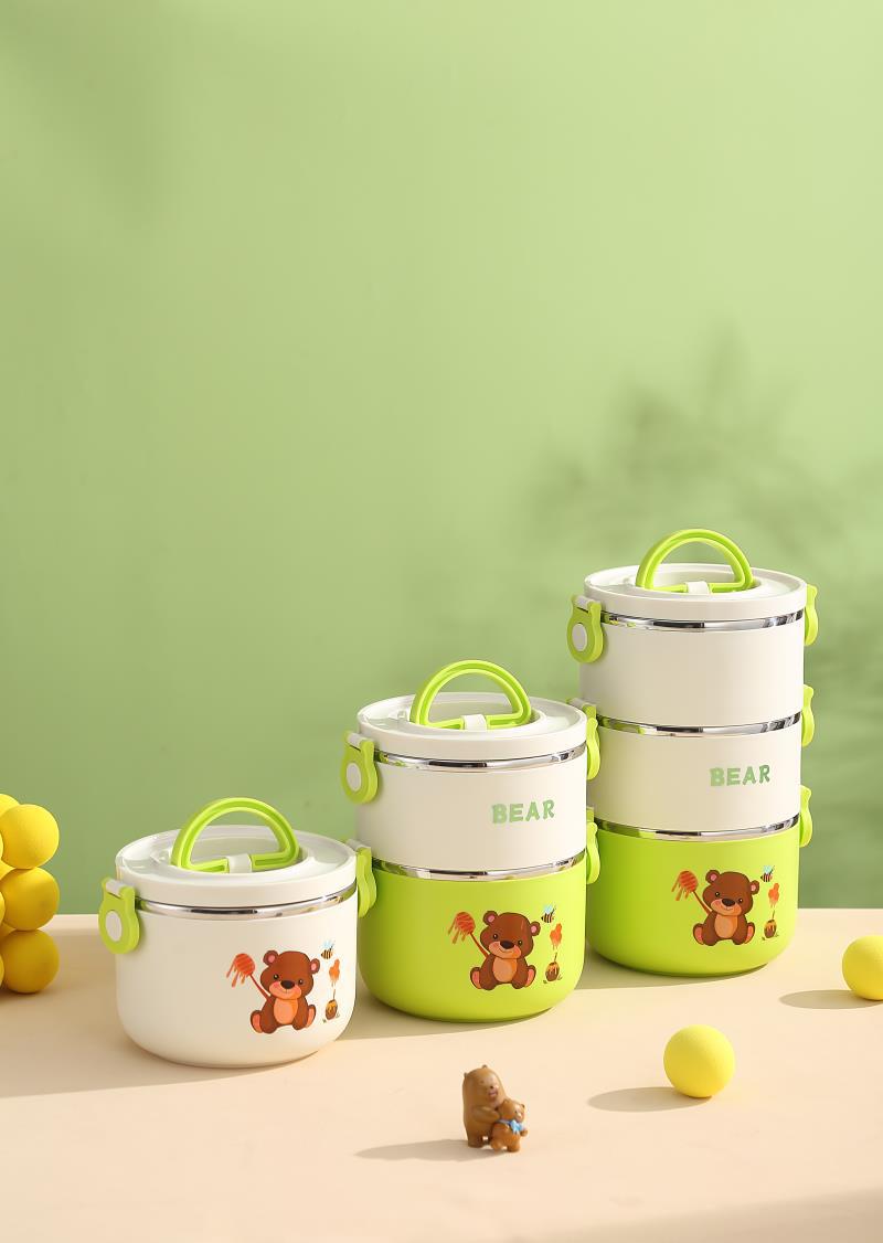 three-layer stainless steel green bear 2200ml (18 pcs/box)