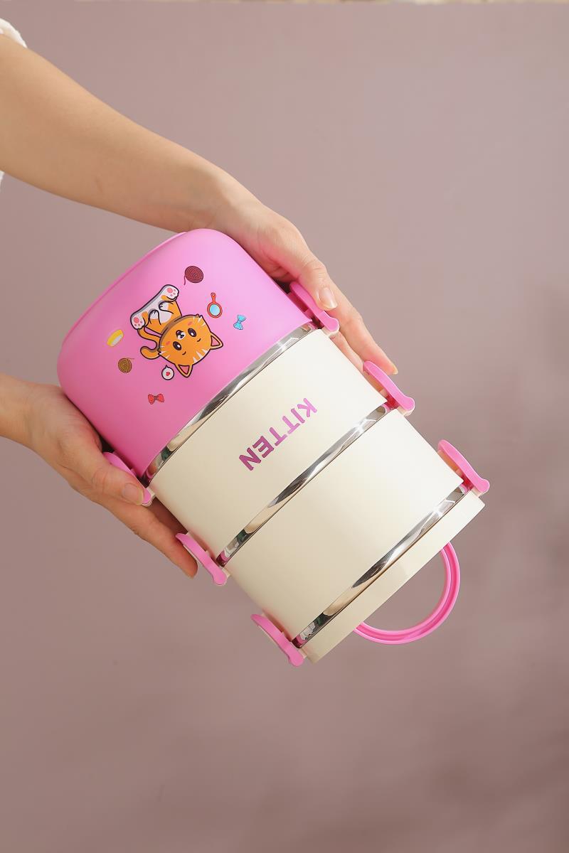 three-layer stainless steel pink kitten 2200ml (18 pcs/box)