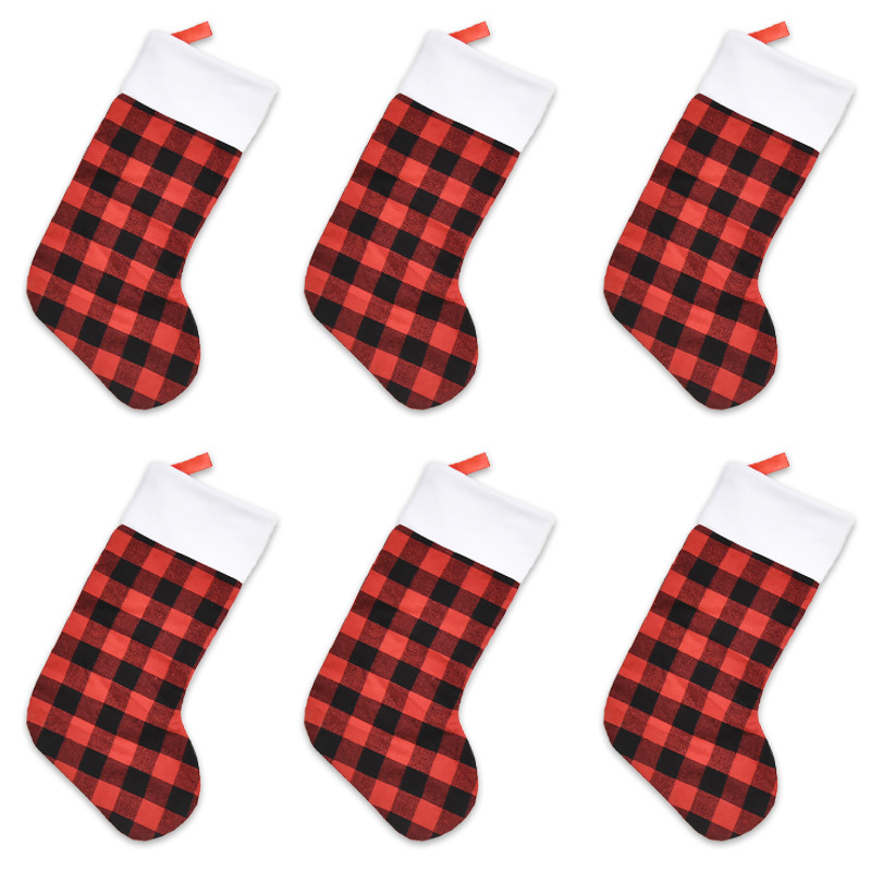 e-w43 large red and black plaid socks 6 pieces per pack