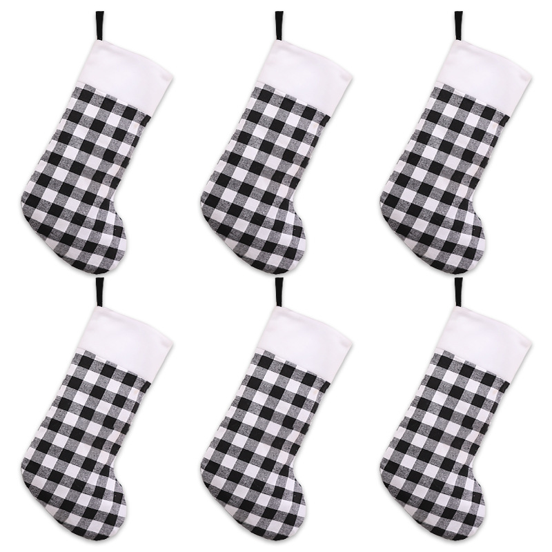 e-w42 large black and white plaid socks 6 pieces per pack