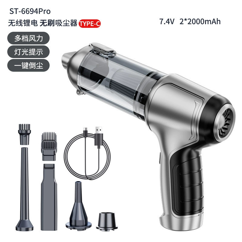 Compatible with US, European, British, Australian, and Chinese national standards chargersSKU 100Minimum Order Quantity (MOQ) applies, please contact customer service for details! Car-mounted vacuum cleaner, wireless car vacuum cleaner, home car washing device.ST-6645