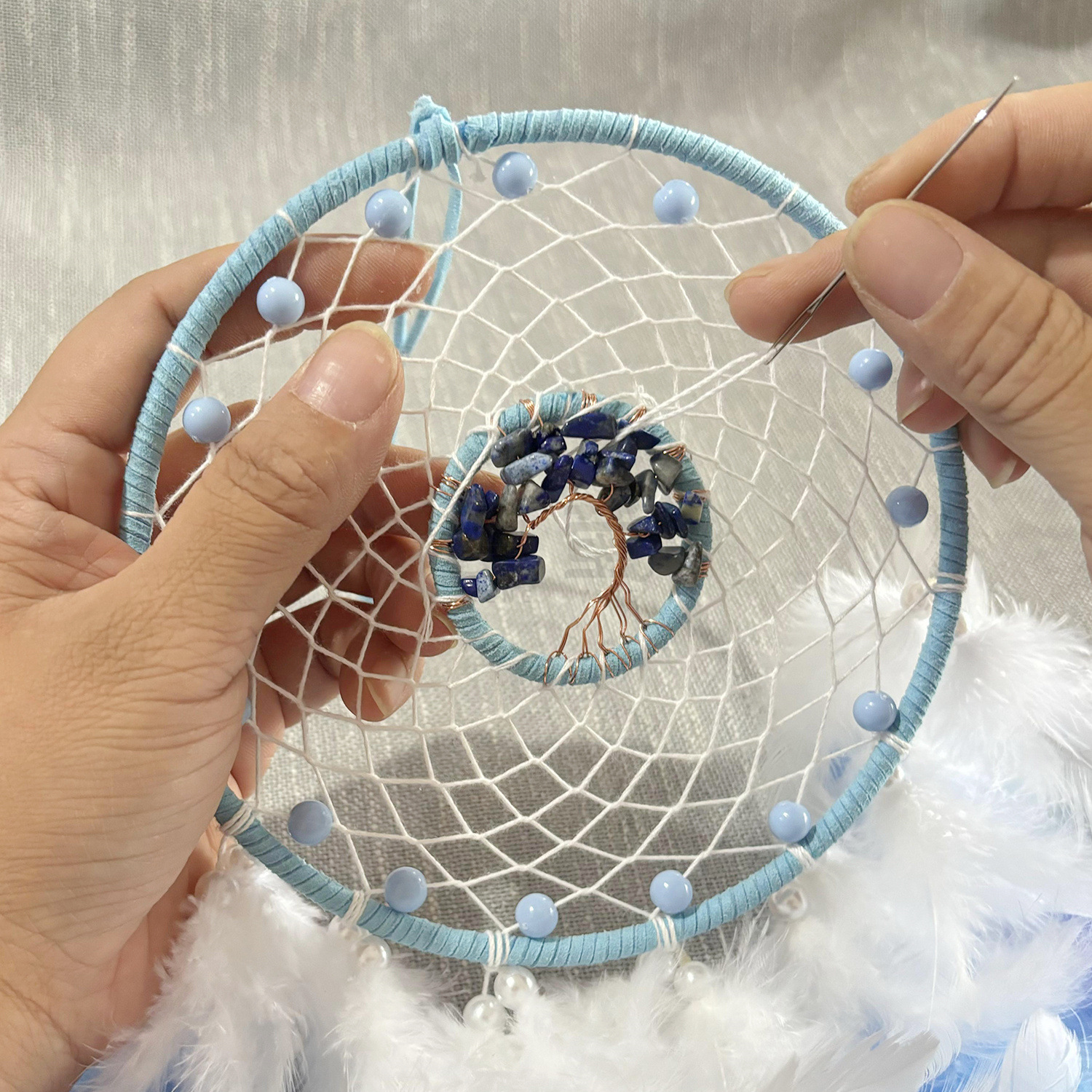 high-end entry lux dreamcatcher feather ornaments crystal stone lucky tree woven wind chimes living room wall decoration pendant