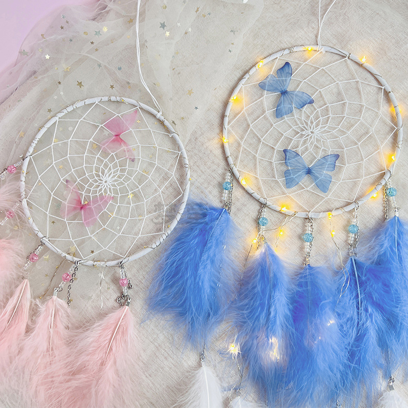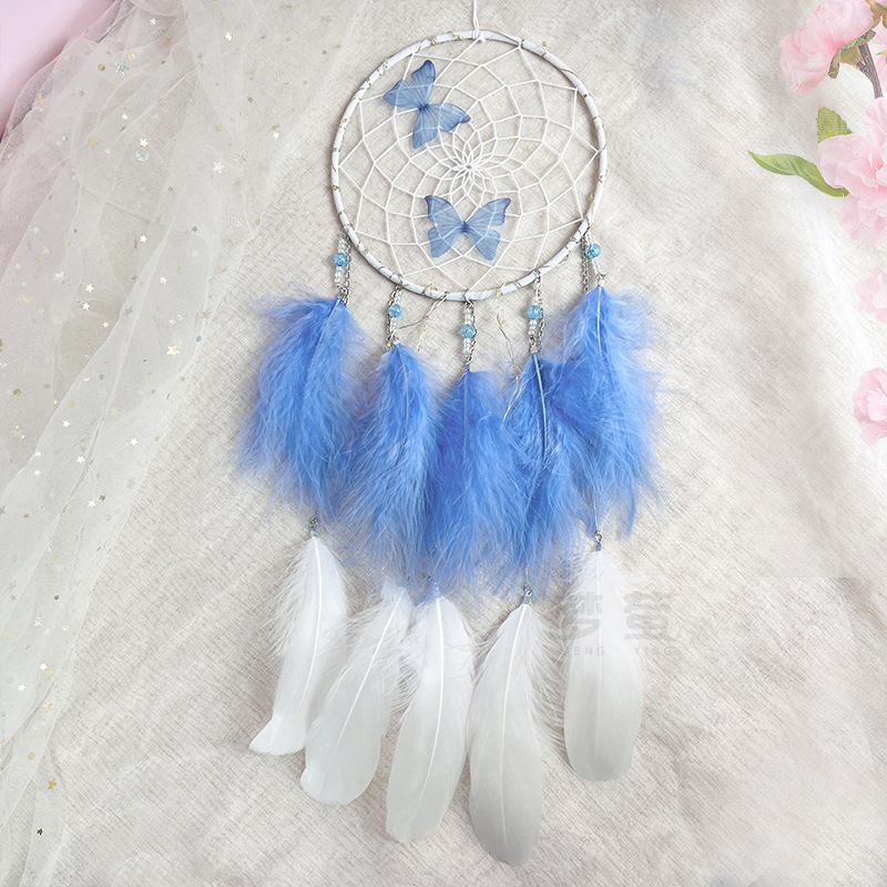 butterfly dreamcatcher ornaments colorful feather wind chimes girl's heart ornament hand-woven home ornament crafts
