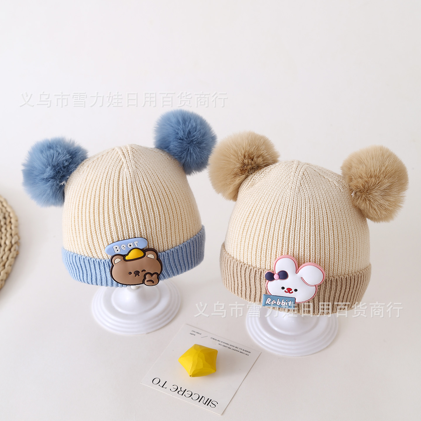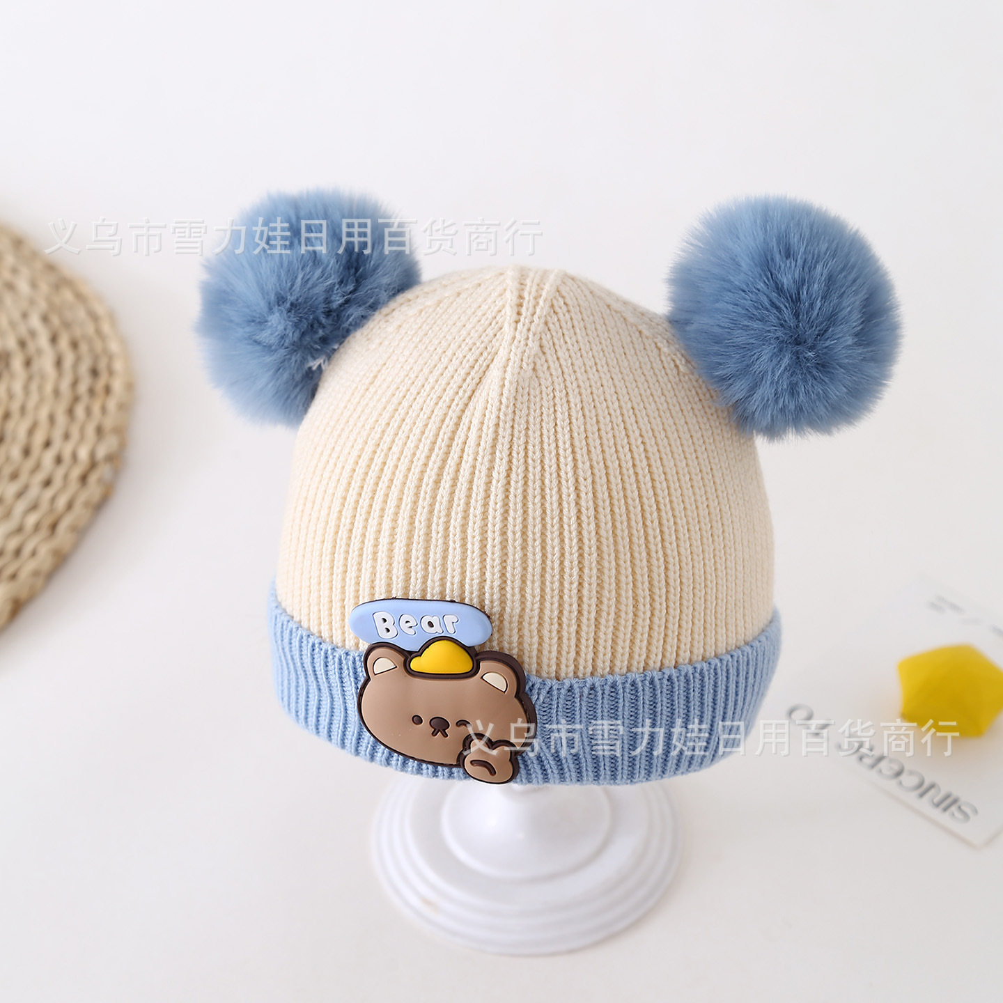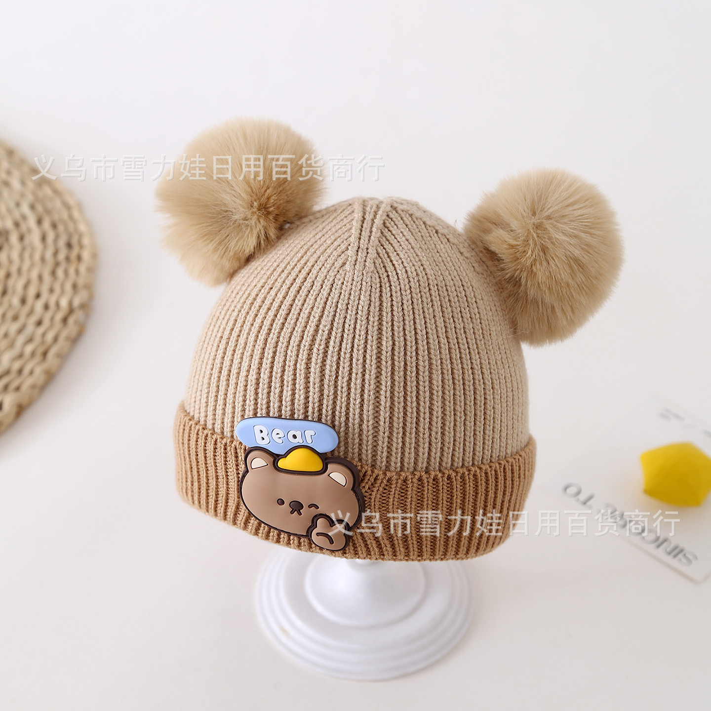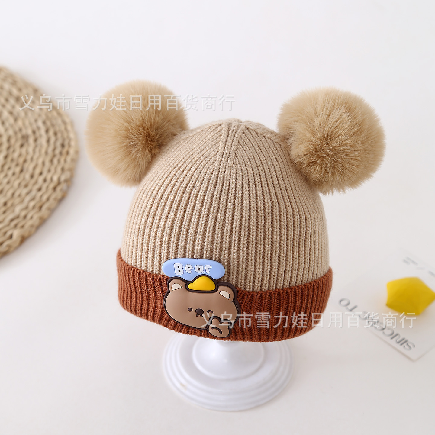 autumn and winter children's warm hat cute stripes bear hat korean style baby's same double ball knitted hat baby boy and baby girl hat