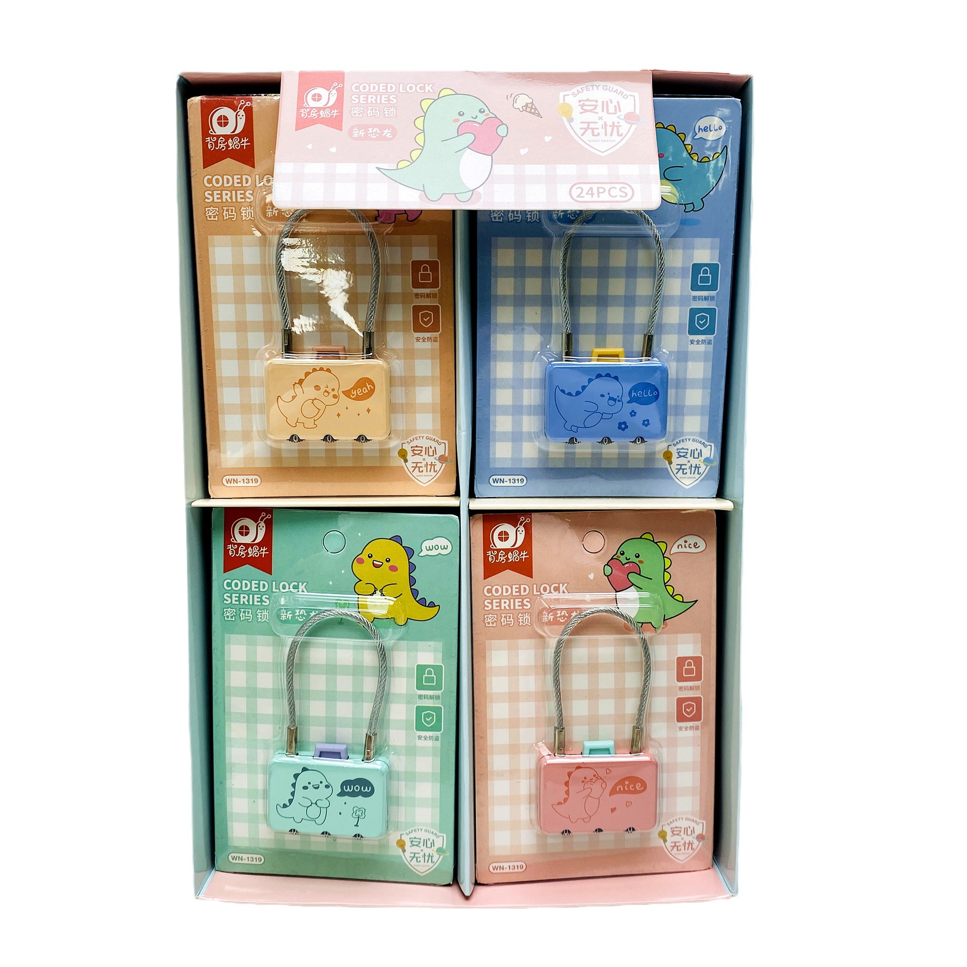 wn-1319 steel wire long shoelace password lock new dinosaur style