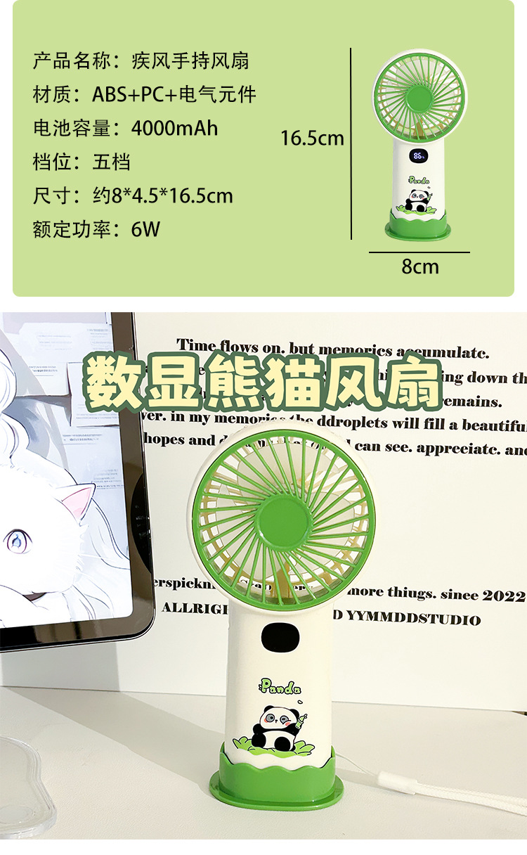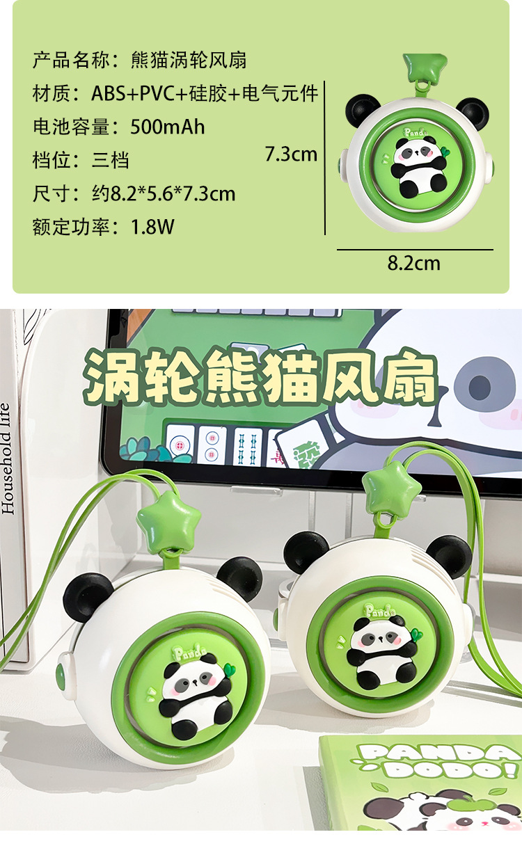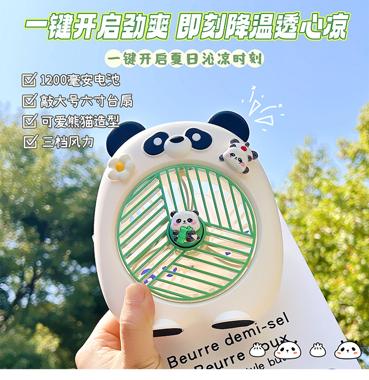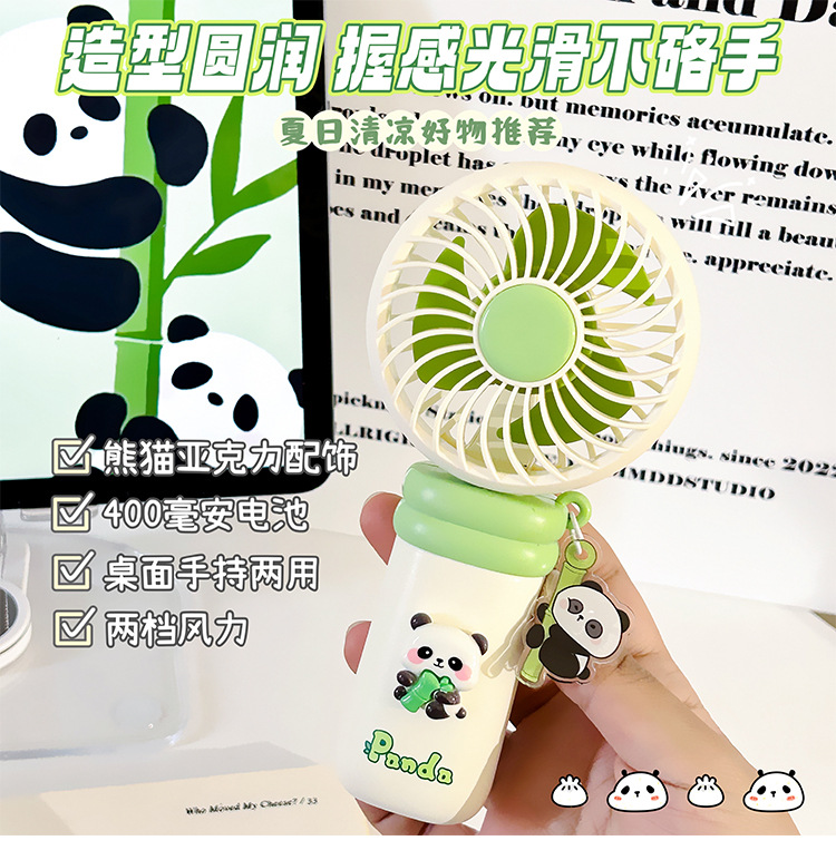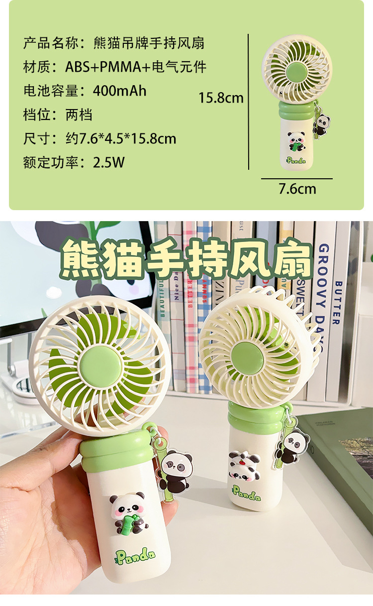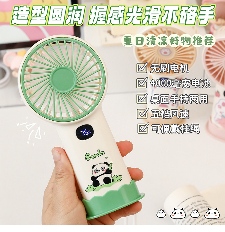 summer cartoon handheld fan desktop fan hanging neck fan small usb charging portable panda series fan