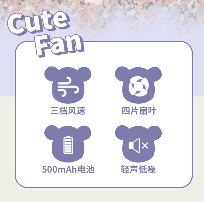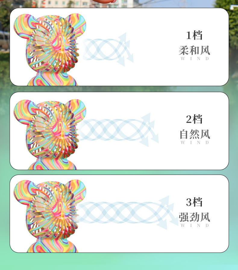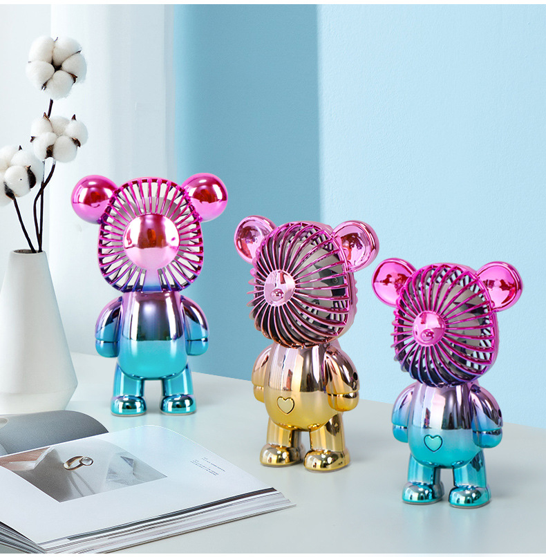 Colorful Electroplated Gradient Bear Fan (USB Charging)
