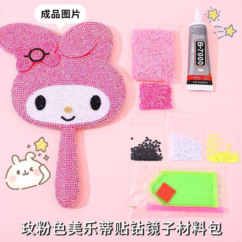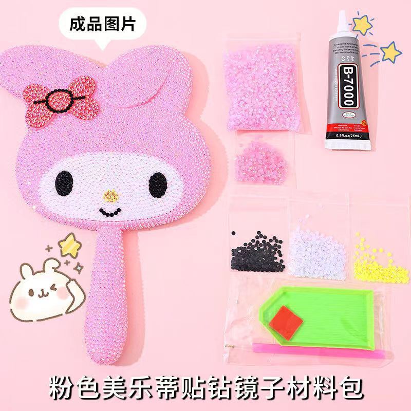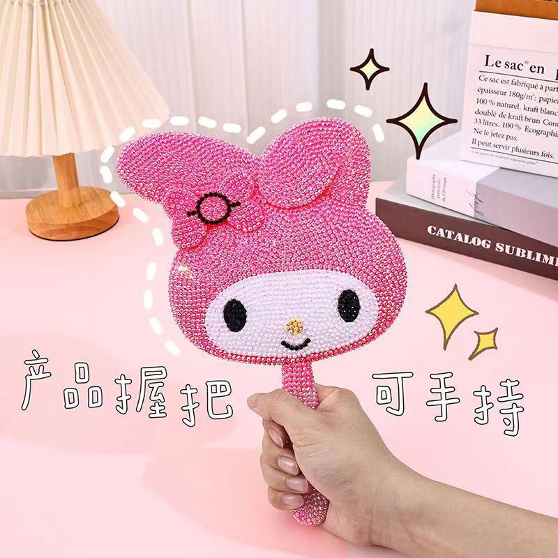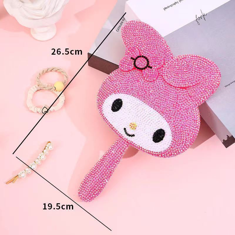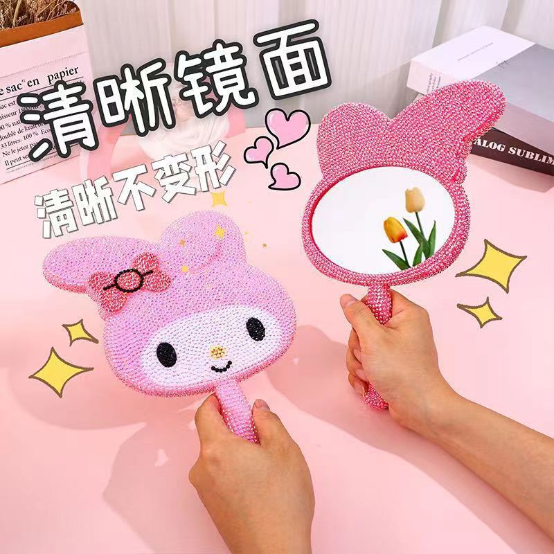 wholesale cartoon hd crystal handle diy mirror creative bunny cute shape makeup mirror handheld single-sided beauty