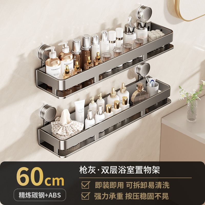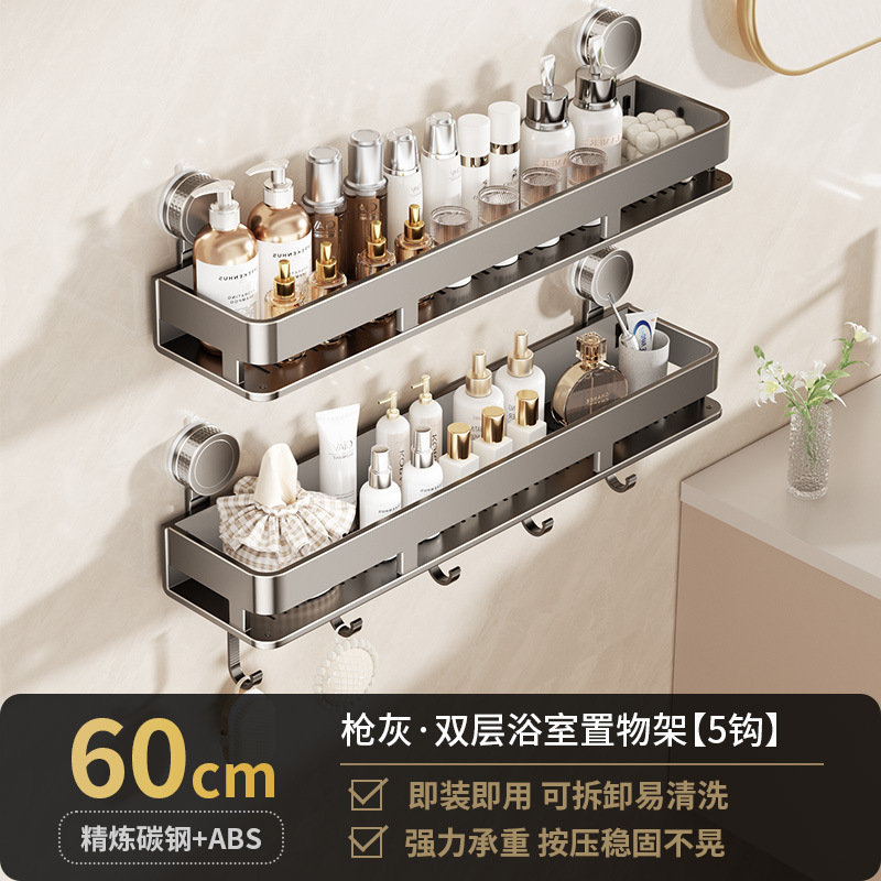 [suction cup-gun gray] double layer 60cm +5 hooks +1 towel bar
